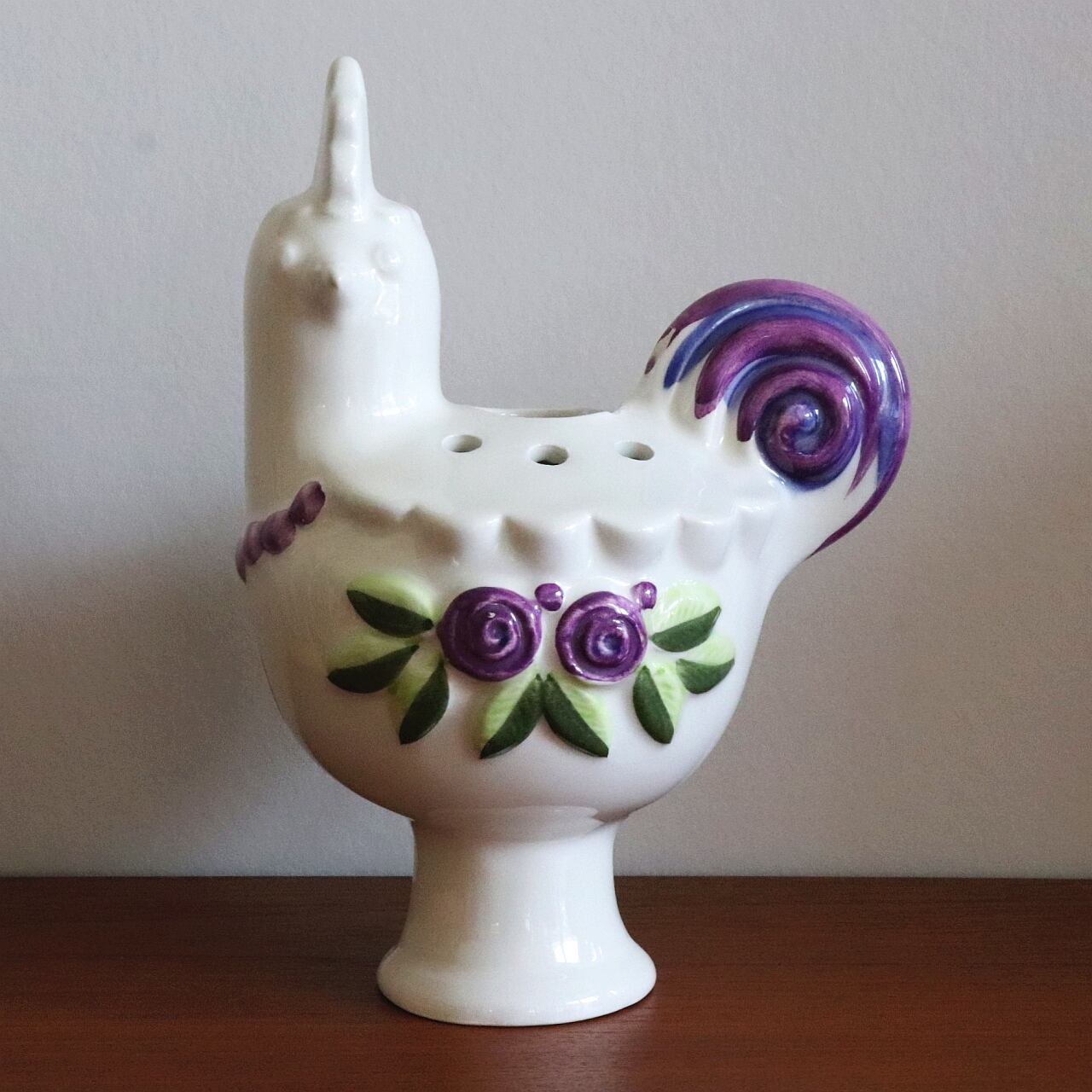 1960-70年代頃、Rosa LjungがデザインしたスウェーデンDeco社のフラワーベース。白地の本体に花をあしらったデザインで、Rosaが得意とするモチーフの一つです。