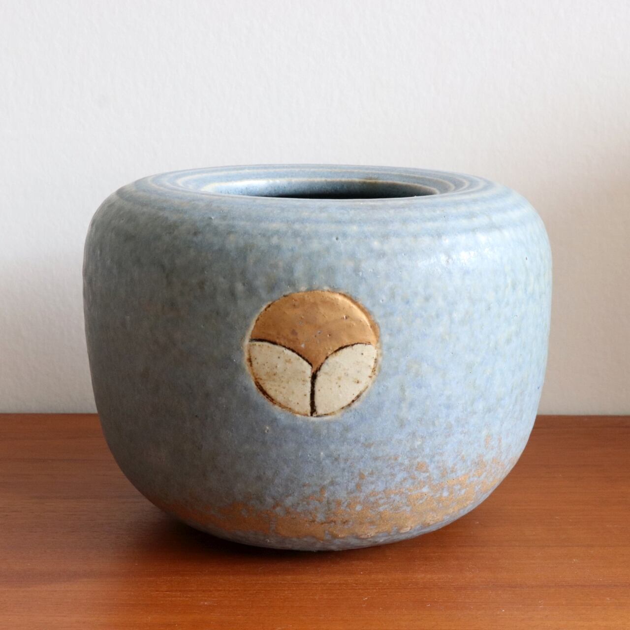 1994年、K-studion Gustavsbergにてリサ・ラーソンが製作したユニークピース(一点物)のポット。手描き装飾によりデコレーションされており、ワンポイントの意匠と色のグラデーションが素朴で上品な印象をかもし出しています。