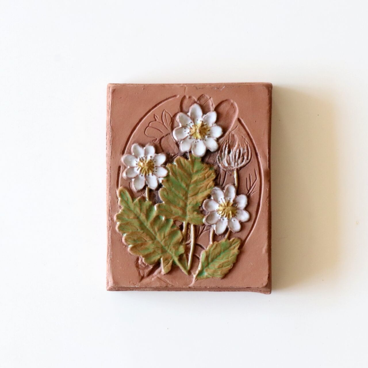 【c6109a】チョウノスケソウ(Fjällsippa)の陶板(8.4㎝) [Jie gantofta / Sweden]