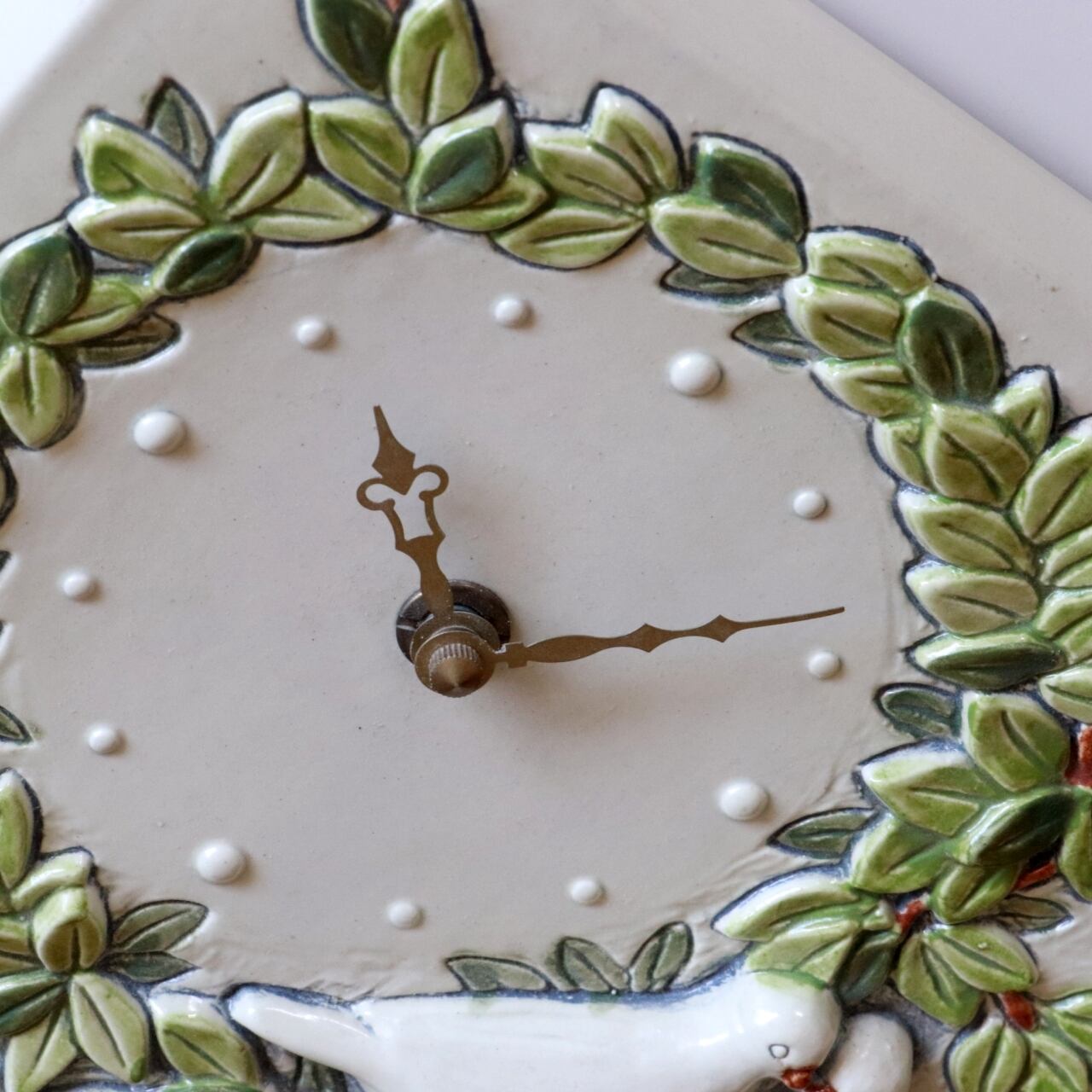 同社の代表的デザイナーAimo Nietosvuori による作品で、数は限定的ですが稀に製作されていた時計付きの陶板です。背面には通し穴と針金が付いていますので、そのまま壁に飾ることも可能です。