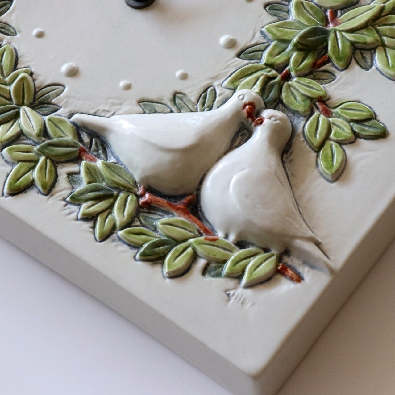 【c6111】掛け時計の陶板(鳩:21㎝) [Jie gantofta / Sweden]