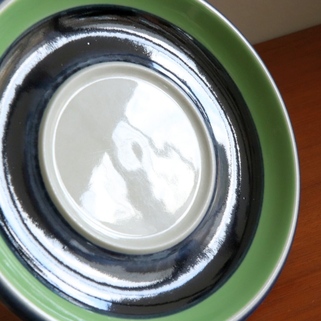 同時代に製作されたエリザベスと同様に厚手の器と2色のみのシンプルな構成ですが、間に下地のクリーム色が、そして釉薬自体も掠れたラインのためとても表情豊かに見えます。