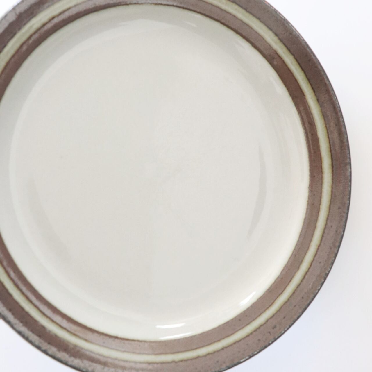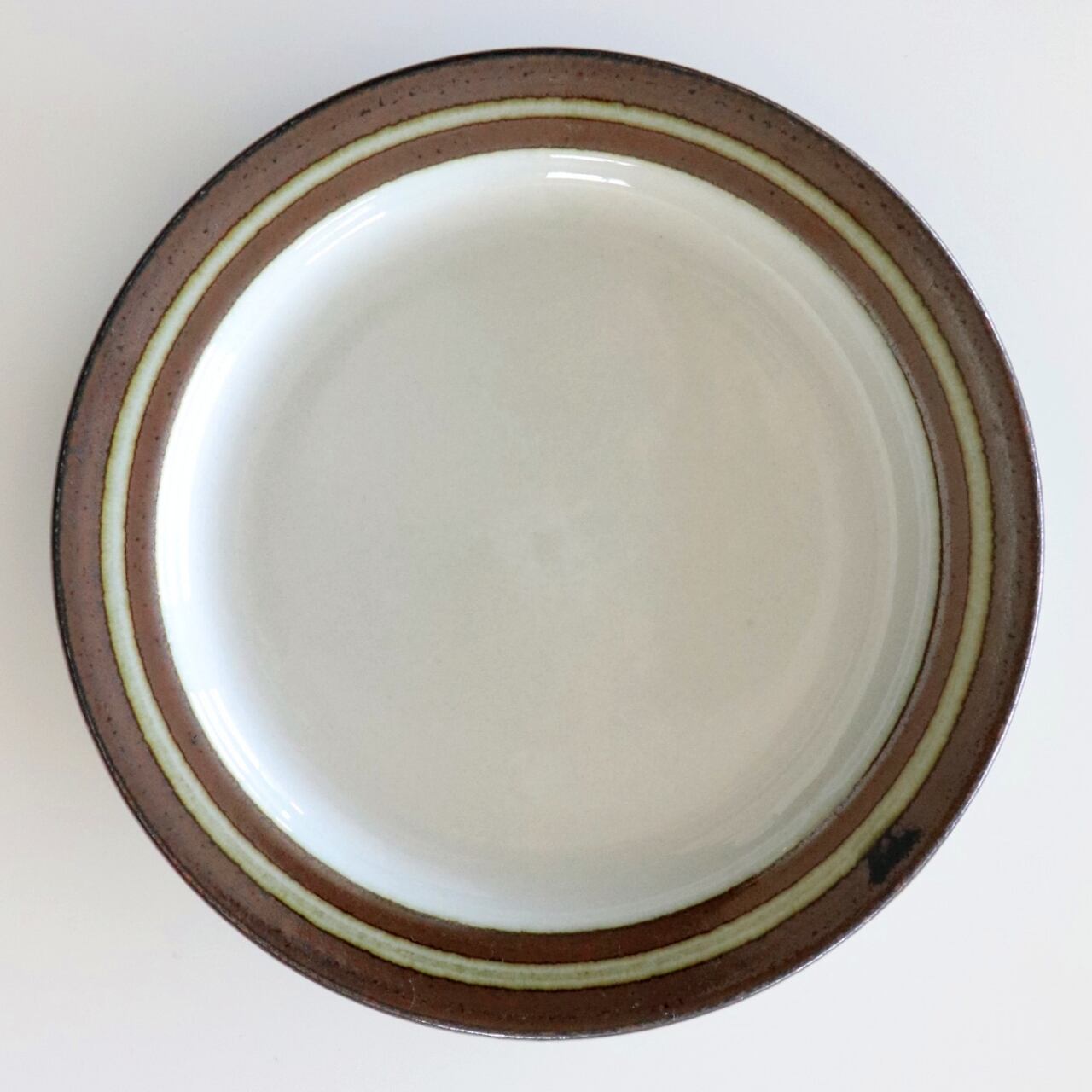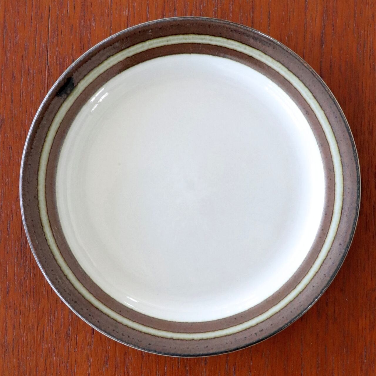 1970-1986年頃、フィンランドのアラビアで製作されたkareliaシリーズ。フォルムデザイン、デコレーションデザインともにAnja/Jaatinen-Winquist夫妻が手掛けています。 70年前後にはフィンランドの地名を冠したシリーズがいくつか発表されていますが、こちらもその一つで「カレリア」地方から名前が選ばれたシリーズです。 手描きの茶色いストライプはマットさと光沢感とが交差する色合いで、少しずつ個体差が出るような仕上がりとして製作されています。