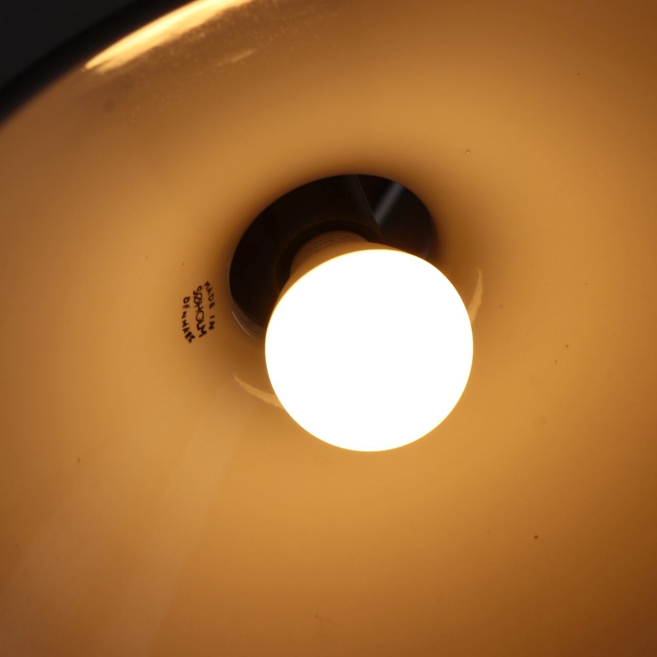 ソケットはE14となり、一般の電気店に置いていない場合もありますがamazon等サイトにて通常販売されているサイズとなります。電球にはLED電球をご利用いただけます。(画像はLED/40W使用)