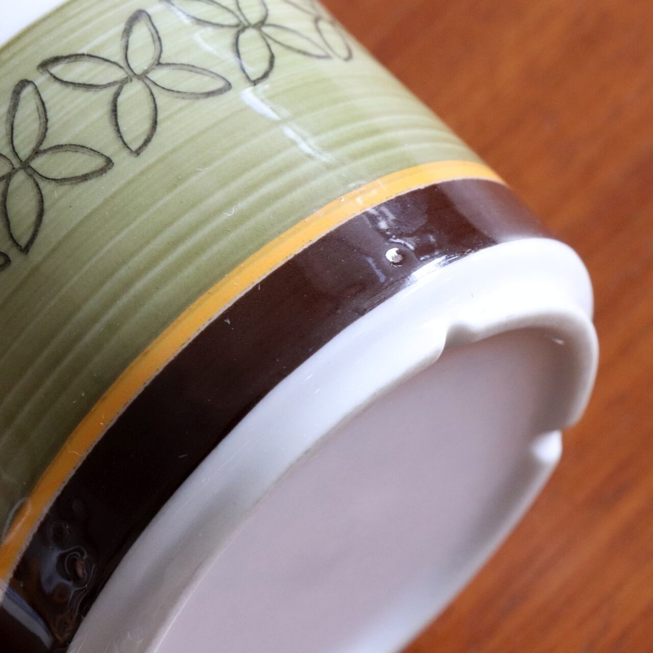 モスグリーン、イエロー、ブラウンと穏やかなアースカラーで配色されており、意匠化されたシンプルな四つ葉模様が良いアクセントとなっています。