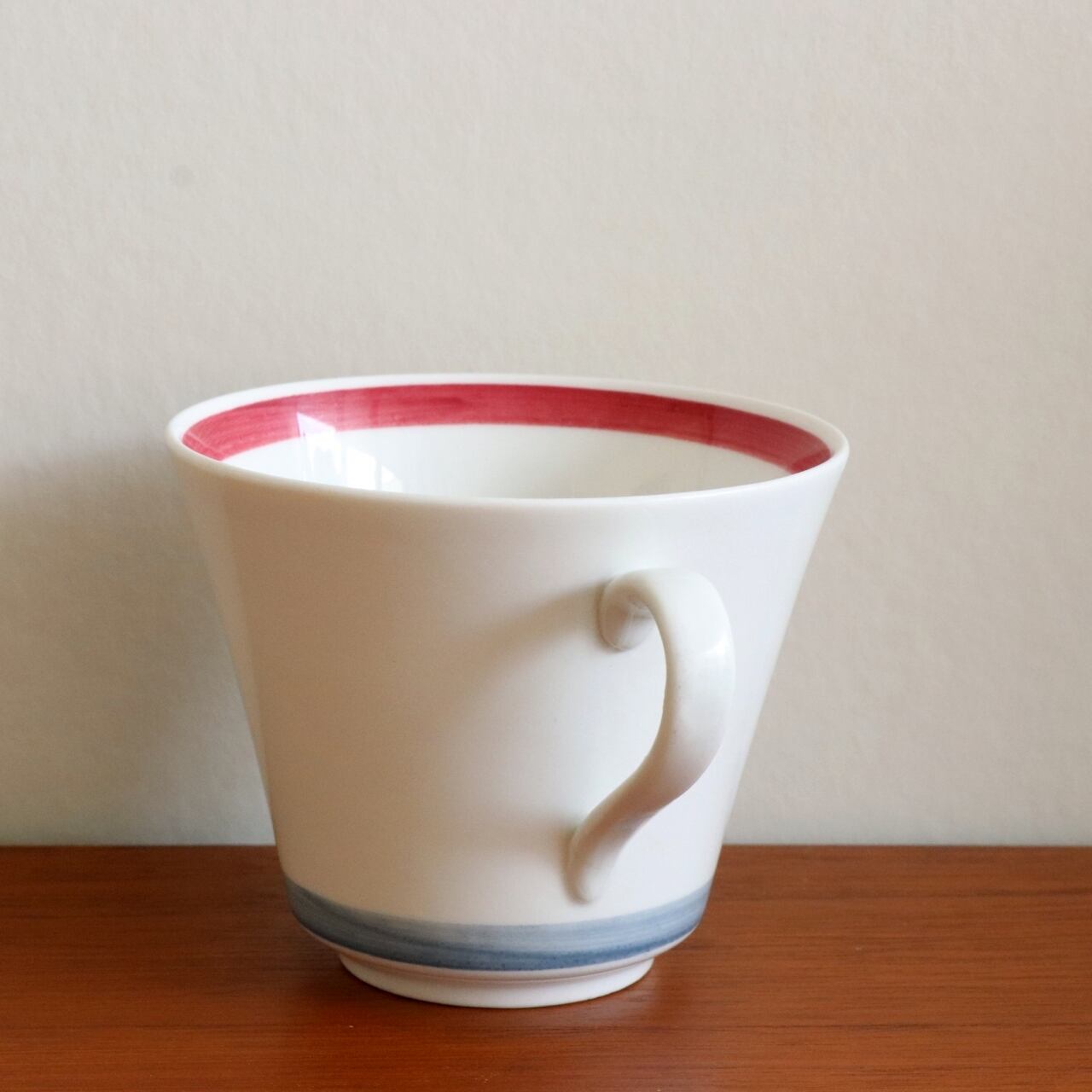 赤・青・黒の3色で軽妙に描かれた作品。カップはサイズ違いで2パターン製作されており、口元の内側が赤と青の2パターンが製作されています。市場に出回る機会は稀で、あまり見かけないシリーズの一つです。