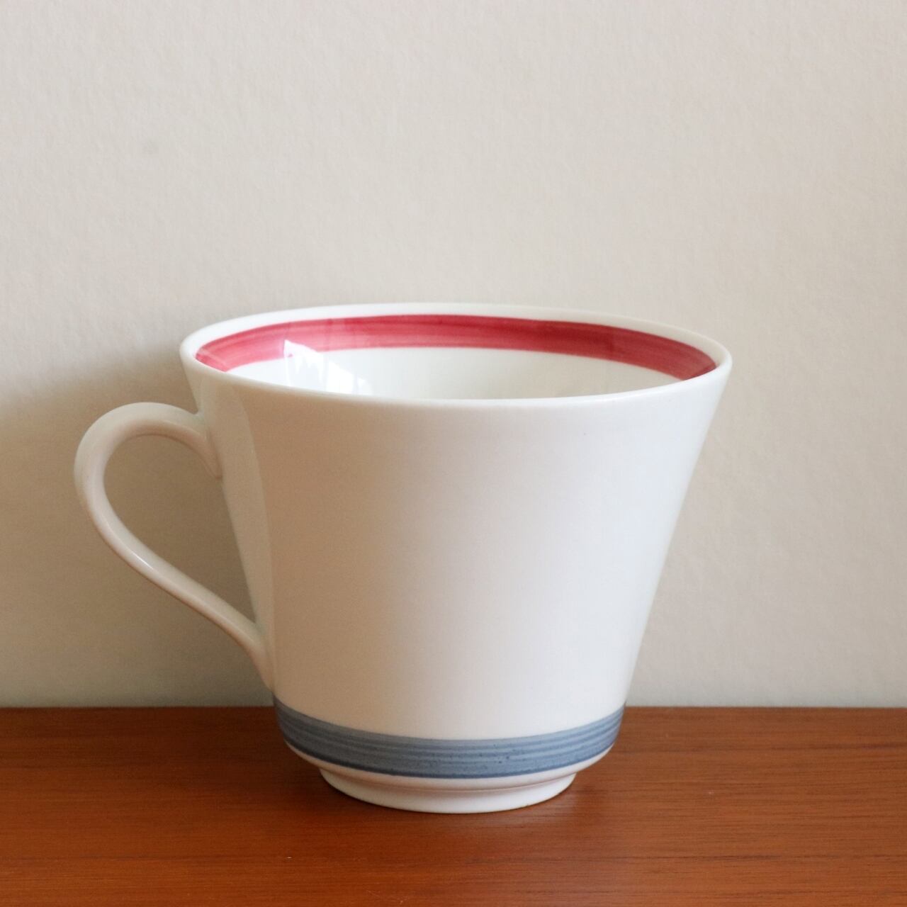 赤・青・黒の3色で軽妙に描かれた作品。カップはサイズ違いで2パターン製作されており、口元の内側が赤と青の2パターンが製作されています。市場に出回る機会は稀で、あまり見かけないシリーズの一つです。