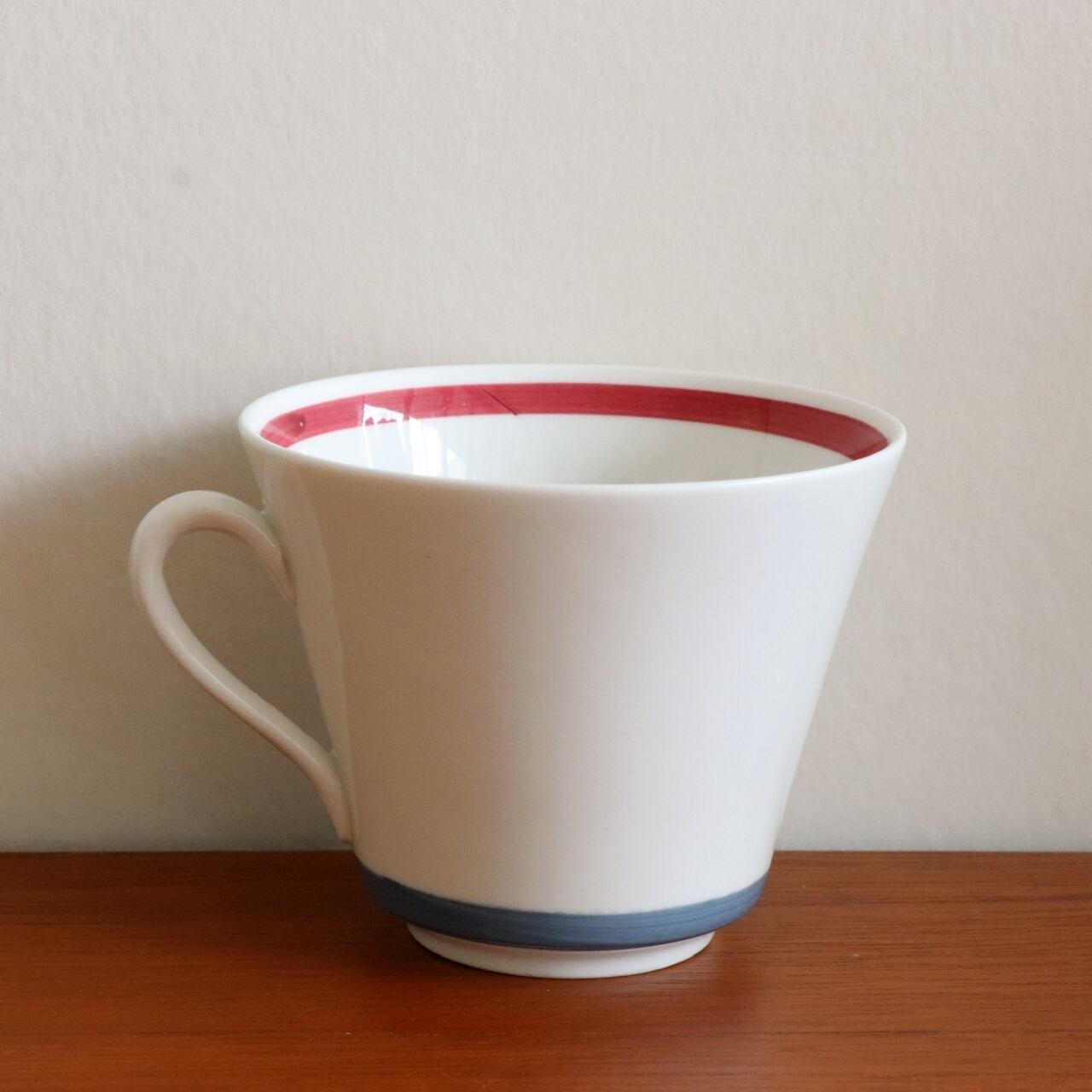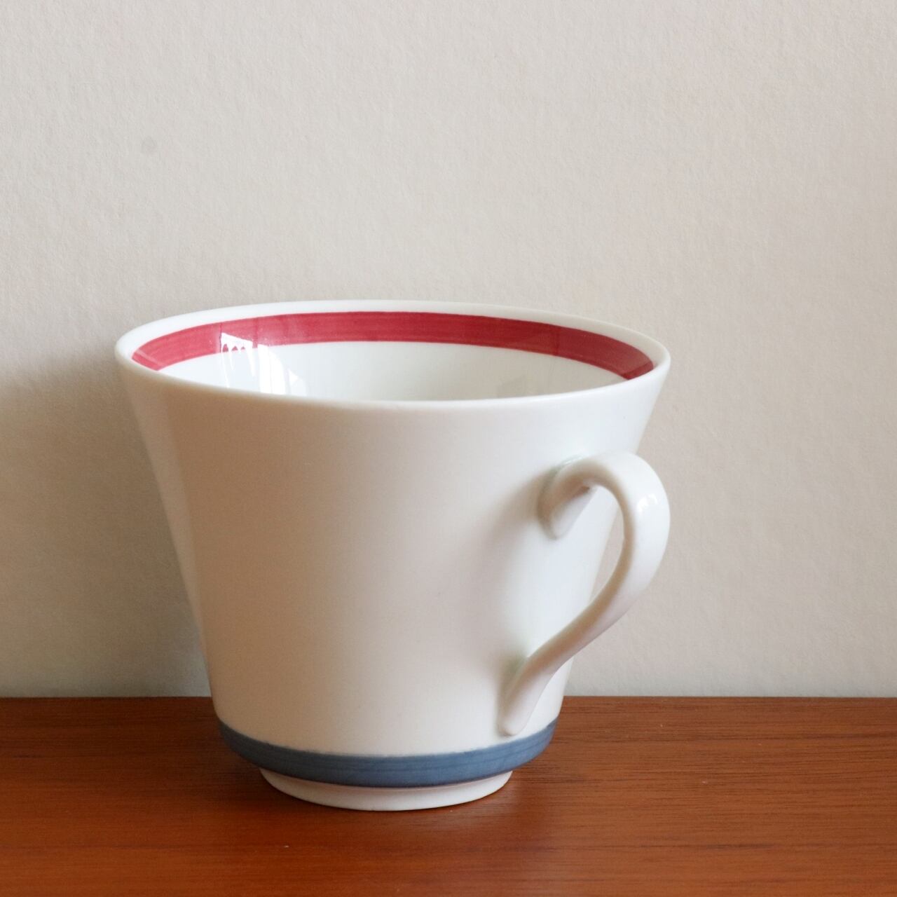 赤・青・黒の3色で軽妙に描かれた作品。カップはサイズ違いで2パターン製作されており、口元の内側が赤と青の2パターンが製作されています。市場に出回る機会は稀で、あまり見かけないシリーズの一つです。