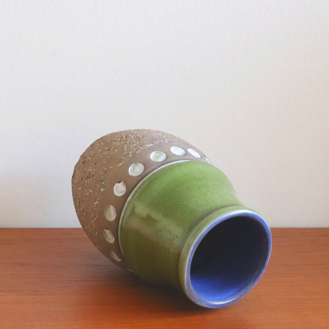 配色や釉薬など、小柄なサイズですが様々な技法が見られます。独特の迫力と安定感があり、花器としてだけではなくそのものだけでも空間に良いリズムを出してくれそうなアイテムです。