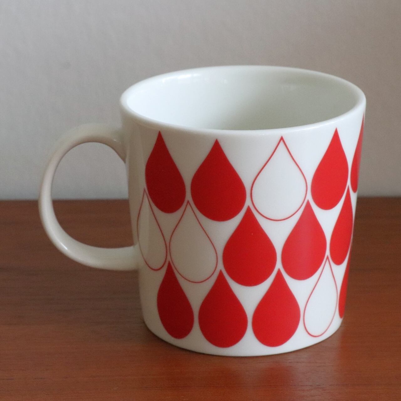 フィンランドのアラビア社で製作された企業ノベルティマグ"Blood Service-赤十字献血センター”です。献血のアピールとそれに協力した人に配られたもので、年代によってバックスタンプが異なるもの(veripalvelu)や、側面の柄一部が異なるパターンが製作されています。