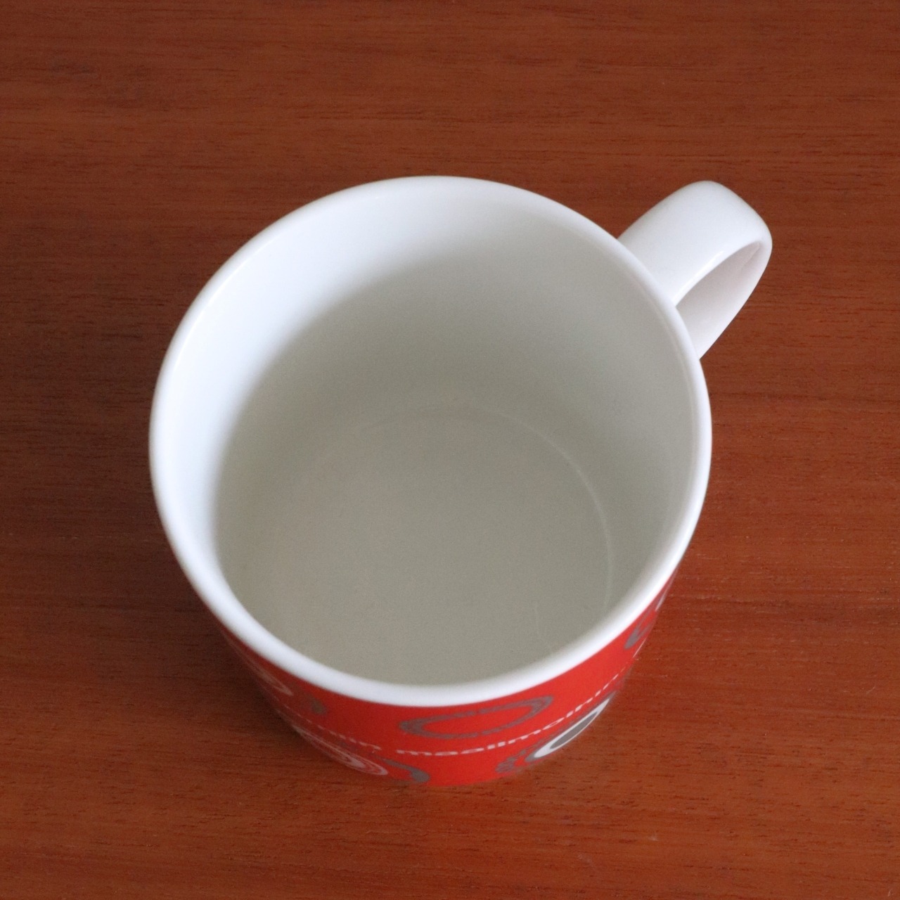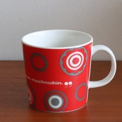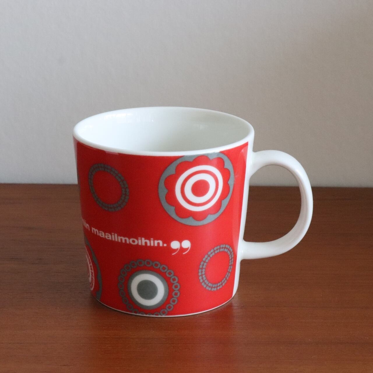 フィンランドのアラビア社で製作された企業ノベルティマグ"SUOMALAINEN KIRJAKAUPPA-本屋のマグ”です。フィンランド最大の本屋”SUOMALAINEN KIRJAKAUPPA”の依頼で製作されたもので、中央には「Avaa ovi lukemattomiin maailmoihin(数えきれないほどの世界の扉を開こう)」と書かれています。