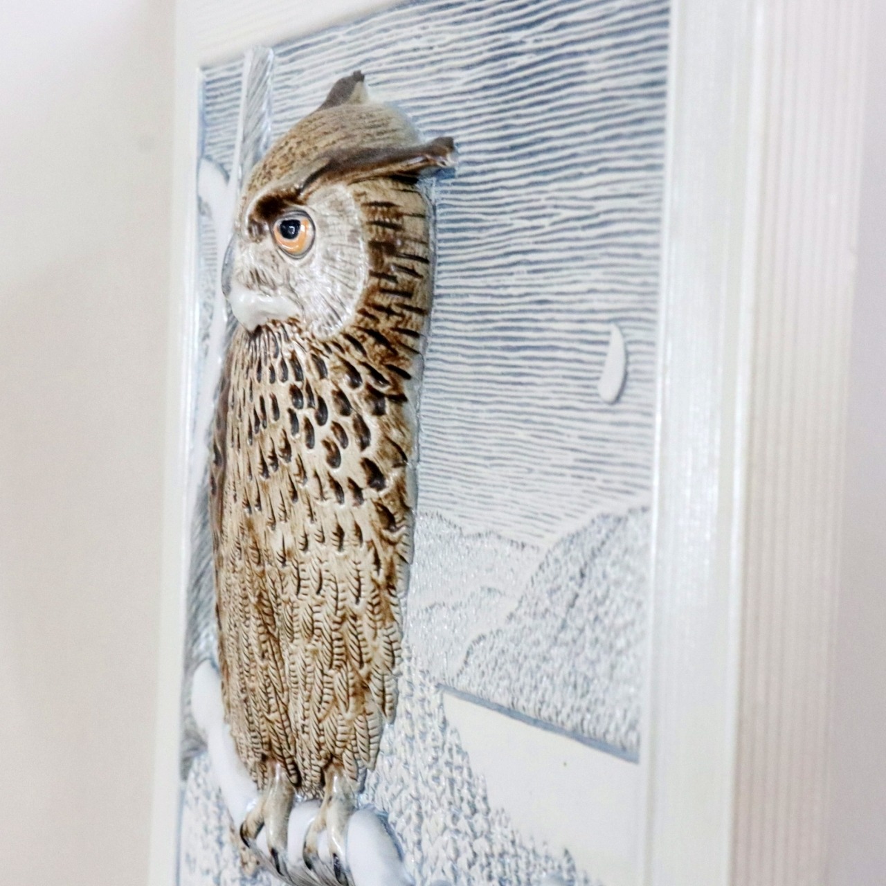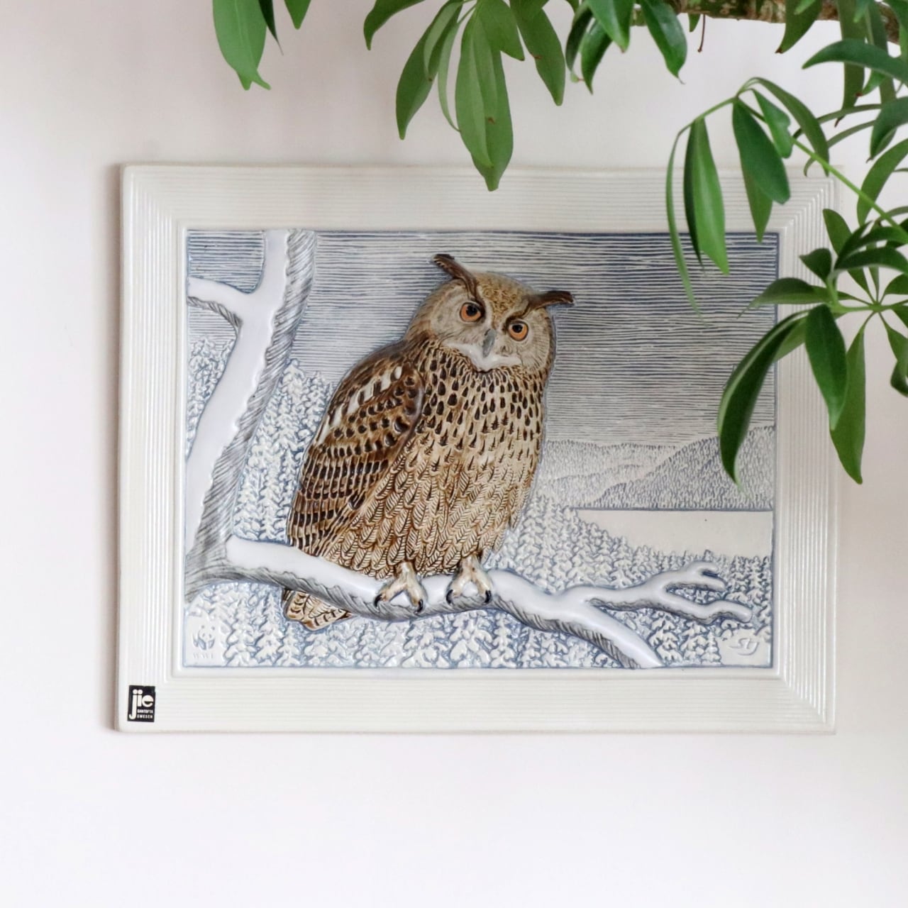 【c6170】ワシミミズクの陶板(32㎝/1989年) / WWF [Jie gantofta / Sweden]