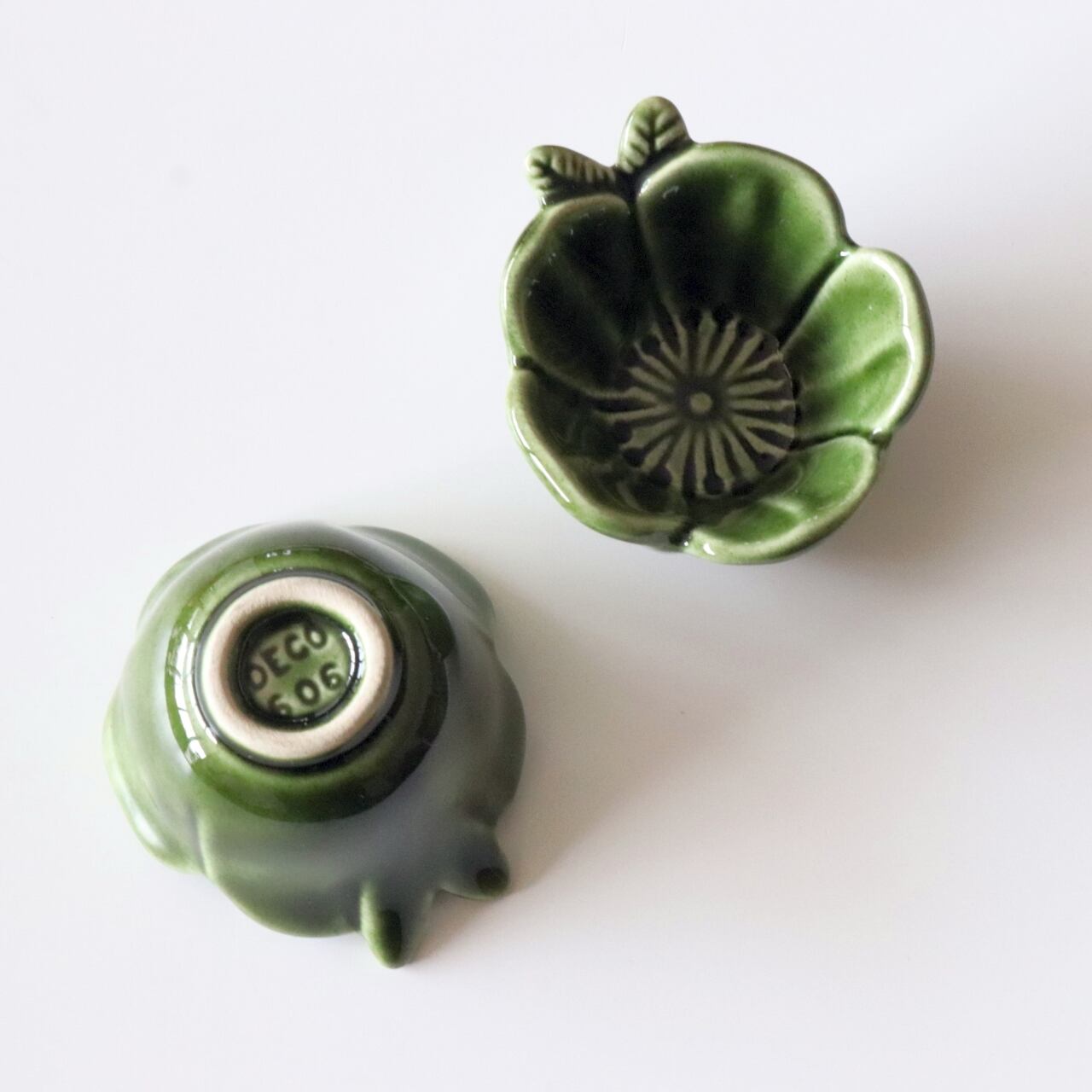 緑釉はグラデーションがあり奥行きのある表情をしています。そのままでも、中に何かを入れて使っても良い演出が出来そうなアイテムです。同等のコンディションで2点セットで入荷しています。
