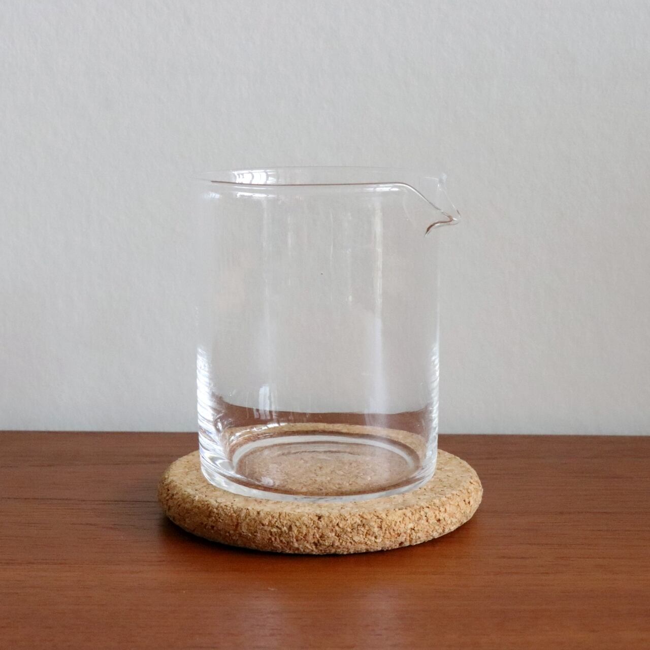 耐熱性の高いガラスを使用し、シンプルで機能的なガラスに異素材のコルクのソーサーを合わせたデザイン。悪目立ちせず、テーブルコーディネートに合わせやすいデザインです。