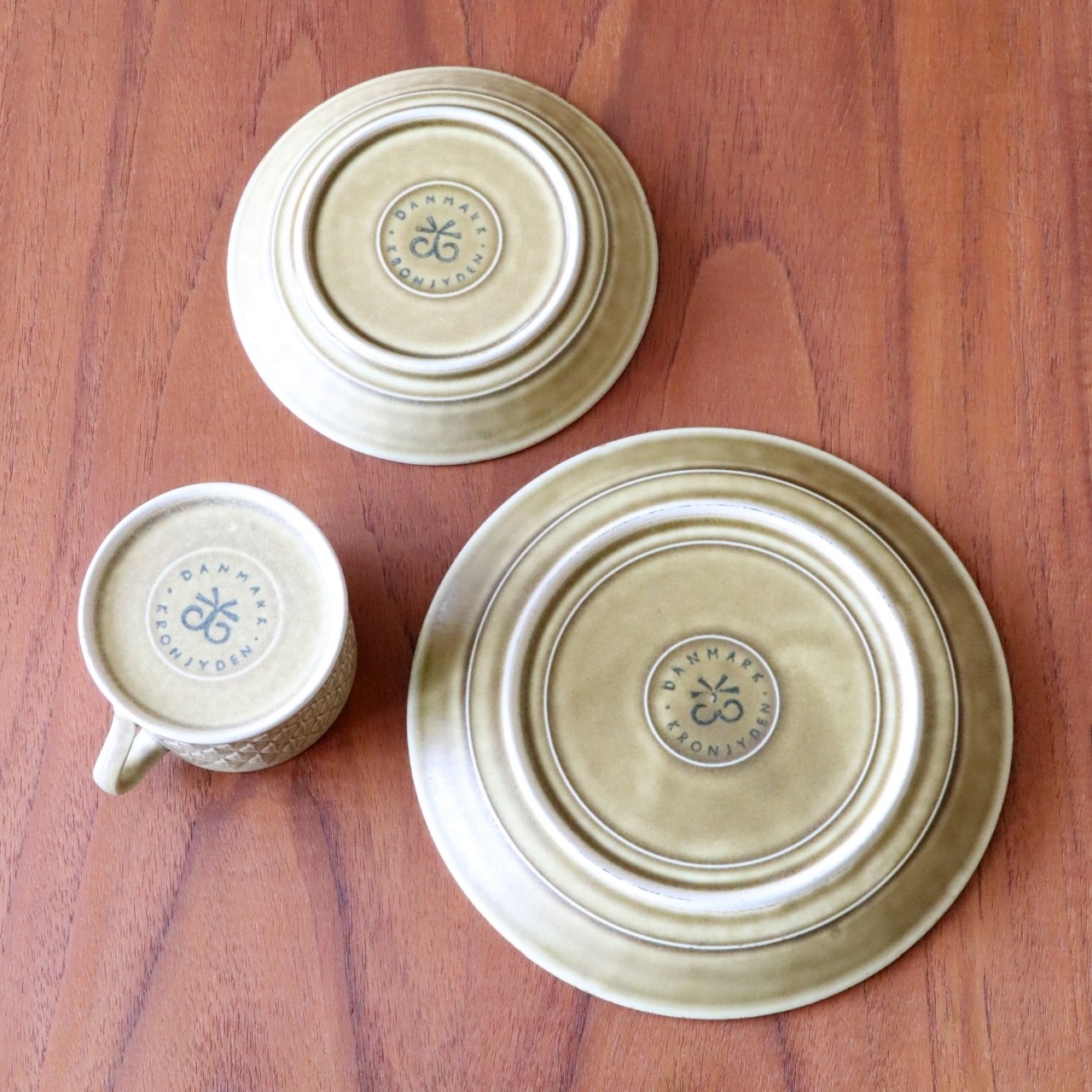 1957年から80年代にかけてデンマークで製作されたレリーフ(Relief)シリーズ。Jens.H.Quistgaardが手掛けたシリーズです。 当初はクロニーデン(Kronjyden)で製作されておりましたが親会社が変わるにつれ、Nissen、B&Gと3社にわたって製作が続けられています。 製造された工房自体は同じですが、親会社によりバックスタンプも複数あることで時代の変遷が楽しめる作品です。 基本カラーはサンドベージュですが、製造初期にごく少量ですがダークブラウンやグリーンのカラーでも製作されています。