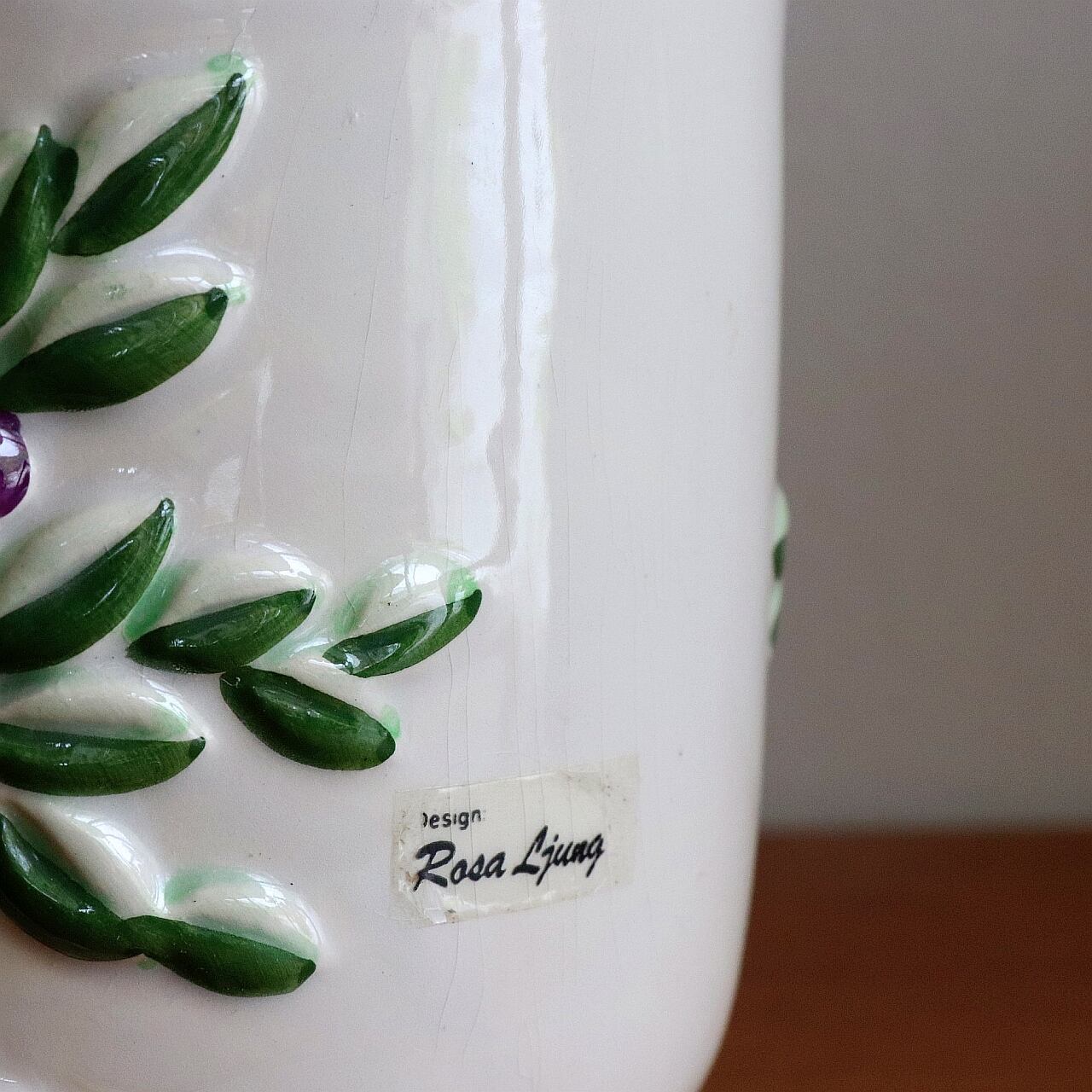1960-70年代頃、Rosa LjungがデザインしたスウェーデンDeco社のフラワーポット。白地のボディに花をあしらったデザインで、Rosaが得意とするモチーフの一つです。