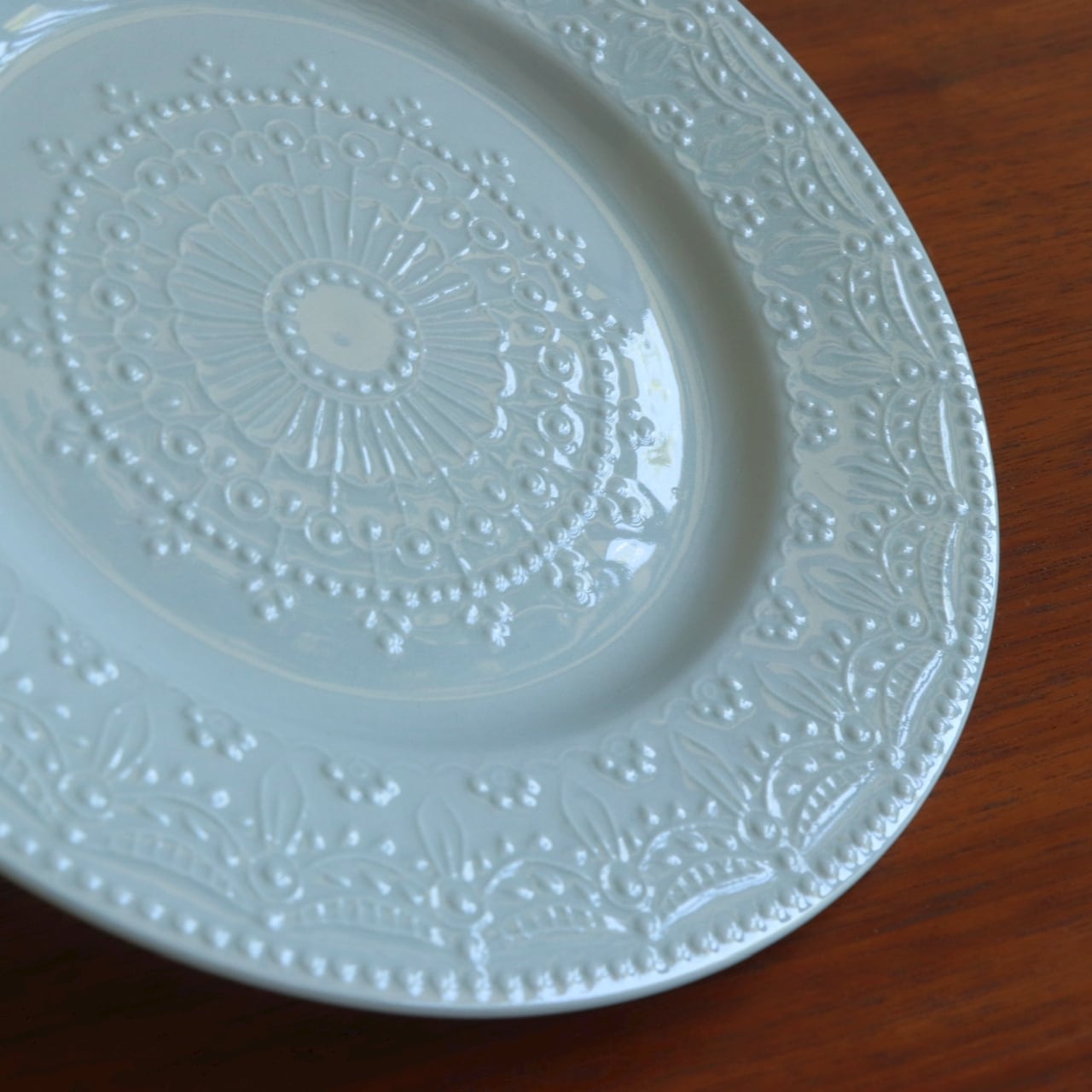 エンボス模様のみで仕上げられた同シリーズはライト(ベージュ)とブルーグレーの2色展開で製作されました。 フォルムデザインのベースにはVuokkoと同じOTモデルが選ばれています。アラビアとしては珍しいデザインで、華やかで上品な模様がとても美しいシリーズです。