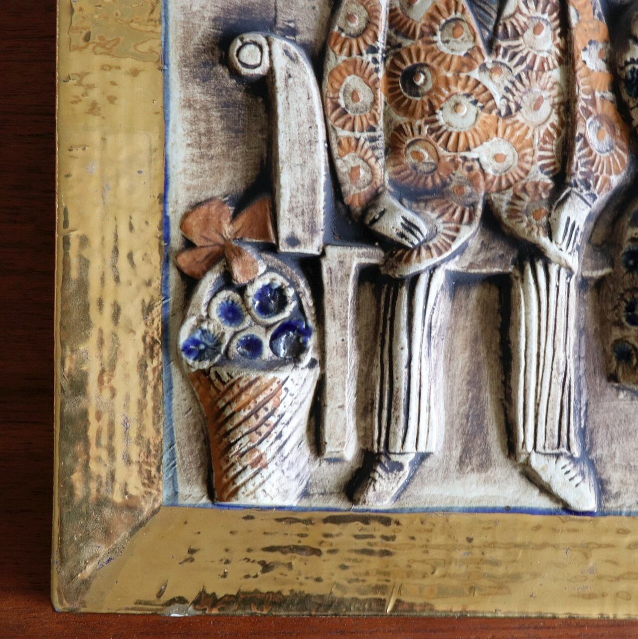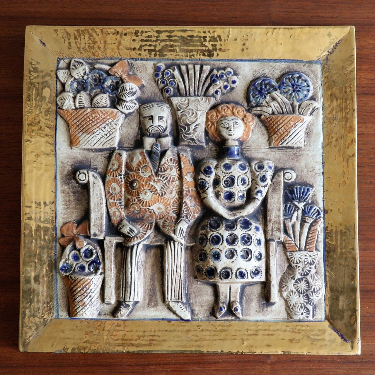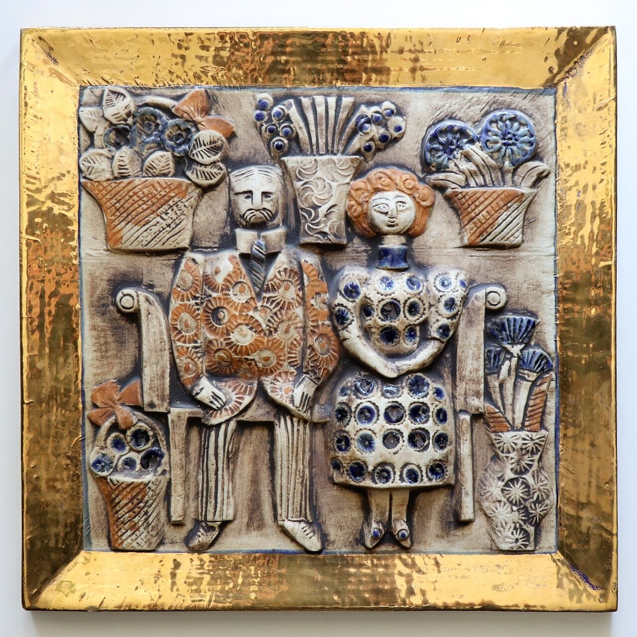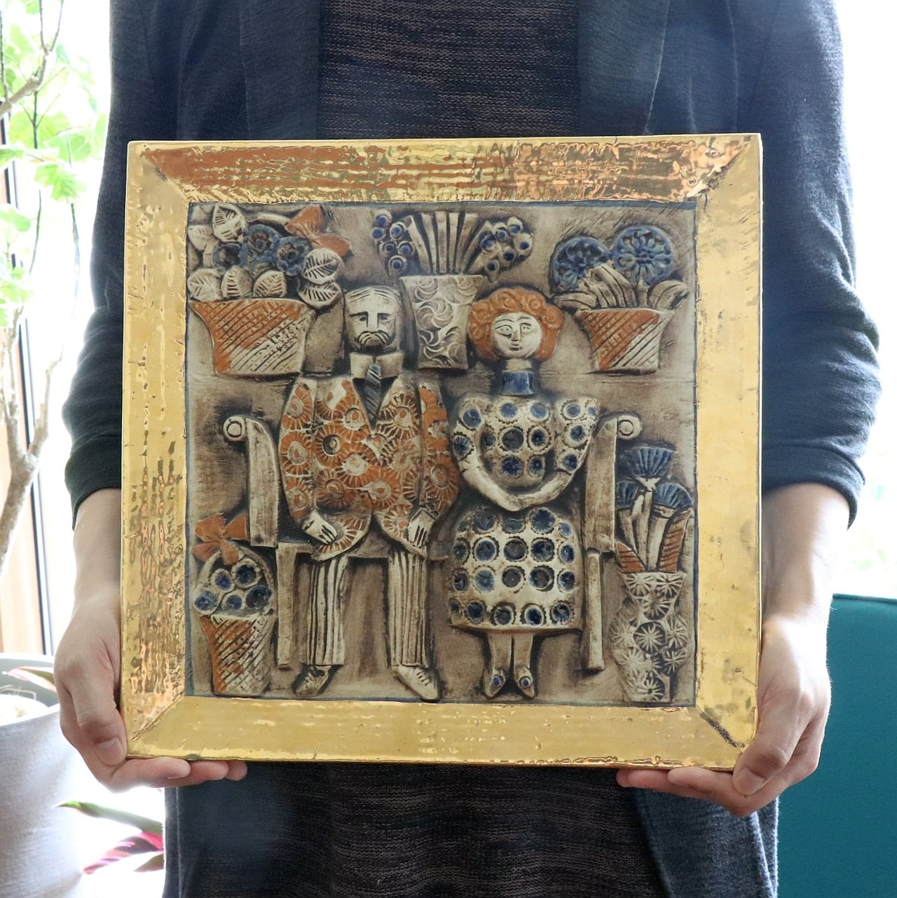 夫婦が仲良く並んだ立体的なデザイン。近いモチーフで「Appeltrad(Apple Tree)/1978-87年」という陶板もありますが、こちらはその前年まで製作されたものでサイズもやや大きく、色目も