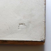 *同陶板に一般的に見られる特徴として背面に焼成時に起因するひび割れとその補修跡が見られます。こちらは陶板表面には出てきておらず、美的・あるいは機能的に目立つダメージでは無いように思われます。