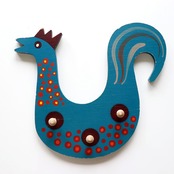 ニワトリを意匠化したもので、ノルウェーらしいノスタルジックな模様が手描きで描かれています。背面には金具と穴が開いており、ビスなどの金具で壁掛けとしてご利用頂けます。