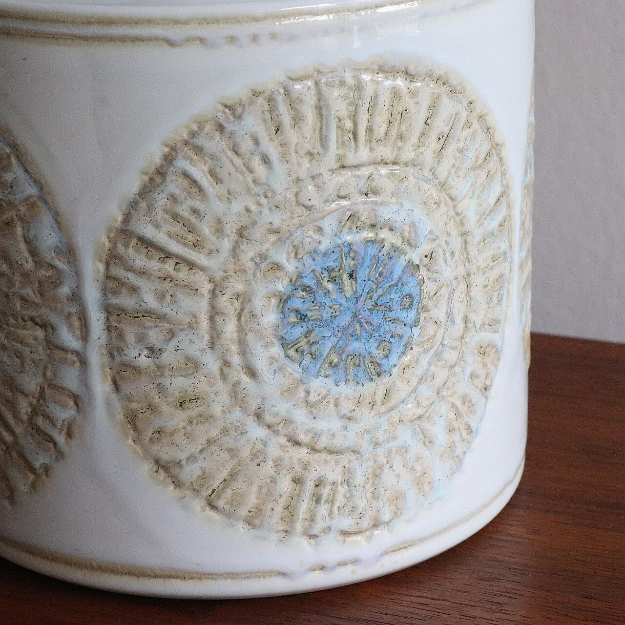 テネラシリーズは当時ロイヤルコペンハーゲンのアートディレクターであったニルス・トーソン監修のもと6人の若手女性作家たちによって発表されたファイアンス焼成を用いたシリーズです。こちらはそのうちKari Christiansen(カリ・クリスチャンセン)によるものでおおらかで奔放な模様が特徴的です。