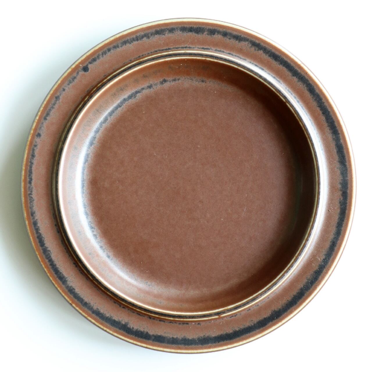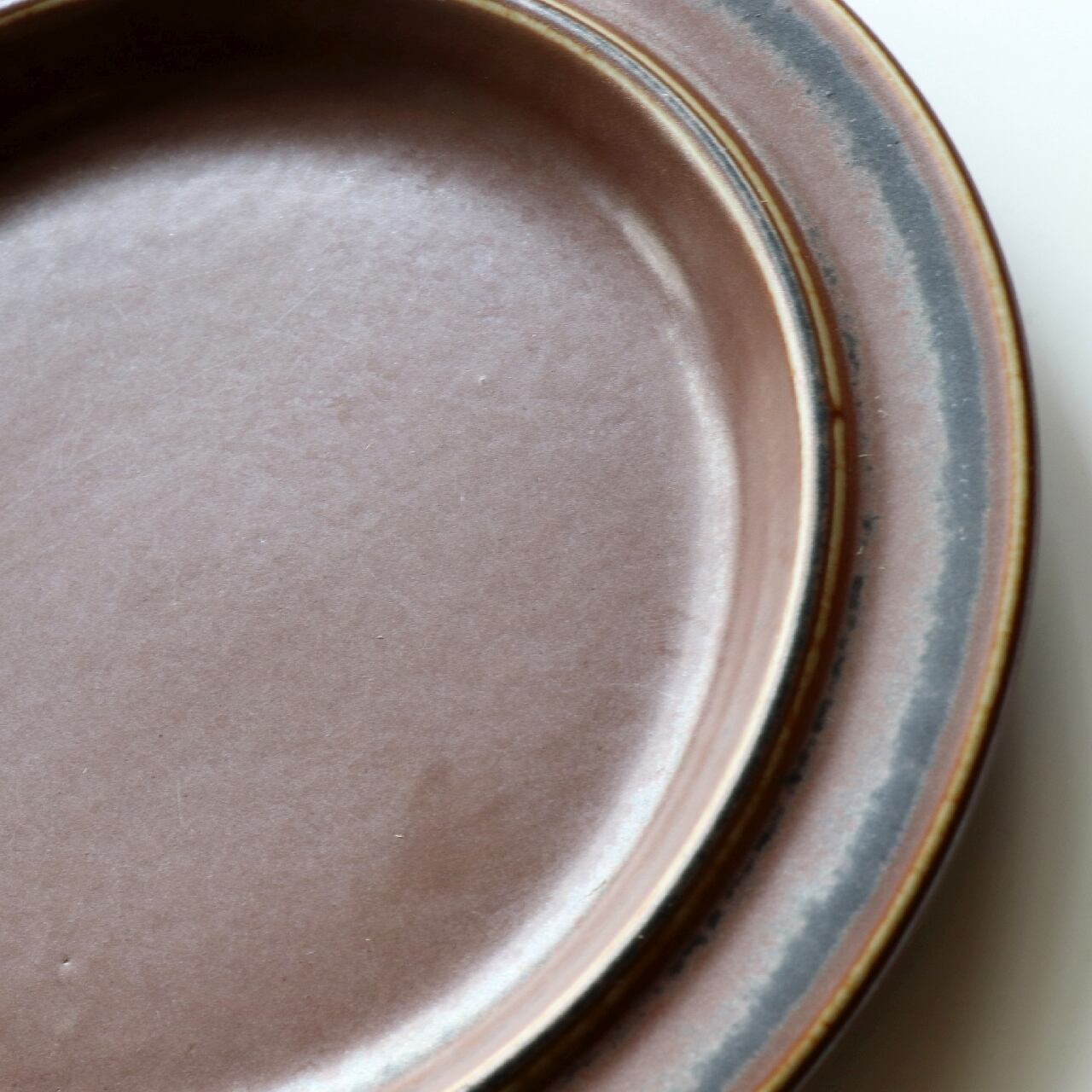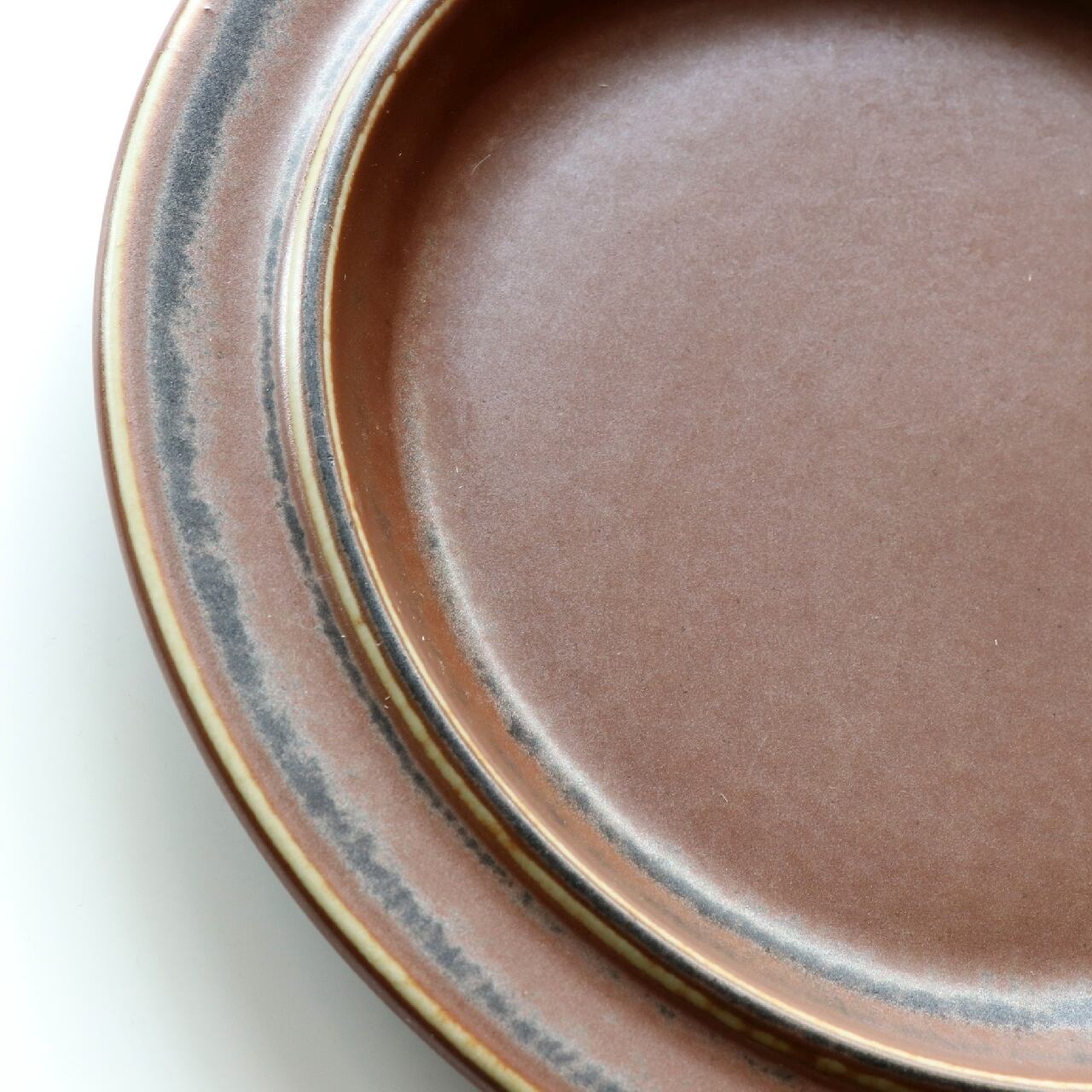 Ruskaは日本語にすると「紅葉」といった意味で、名前のように一つ一つの個体差が大きなシリーズです。ルスカは磁器で成型後、マットなブラウンの釉薬をかけその後に鉄粉を含んだ釉薬をざぶりと塗り付けます。そのため同じシリーズでありながら一点ずつ大きく個体差がうまれ、それぞれが個性的な表情で仕上がることになりました。