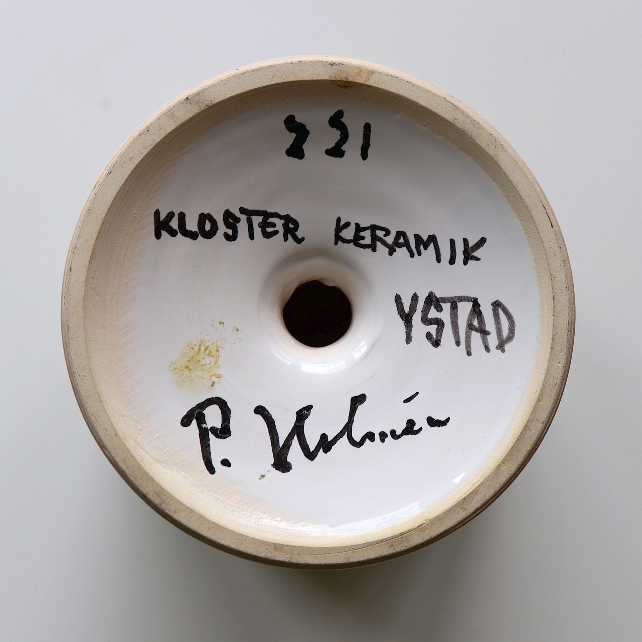 スウェーデンのKloster keramikで製作されたフラワーベース。Kloster keramikはスウェーデン、スコーネ地方のYstad(イスタッド)にあった工房となります。