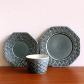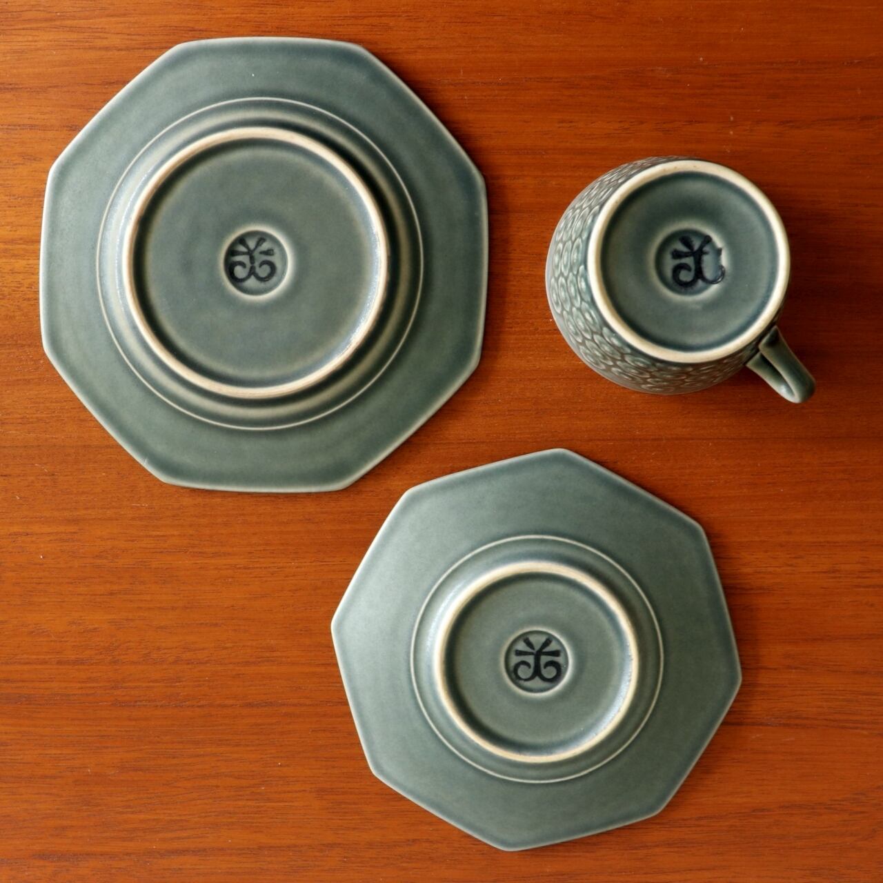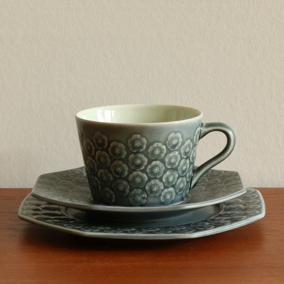 イエンス・クイストゴーデザインによるBlue Azur。 1957年にKronjydenから製作が始まり、その後Nissen・B&Gと製造が続いた人気のシリーズです。 エンボスで表現された杏の花の可愛らしいモチーフでありながら 落ち着いた色合いが甘すぎない柔らかさでとても良い雰囲気です。