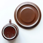 Ruskaは日本語にすると「紅葉」といった意味で、名前のように一つ一つの個体差が大きなシリーズです。ルスカは磁器で成型後、マットなブラウンの釉薬をかけその後に鉄粉を含んだ釉薬をざぶりと塗り付けます。そのため同じシリーズでありながら一点ずつ大きく個体差がうまれ、それぞれが個性的な表情で仕上がることになりました。