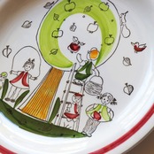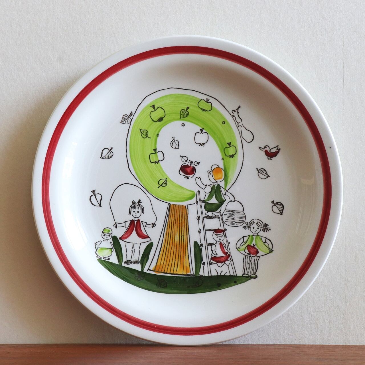 スウェーデンの数え歌「Äppel päppel」を題材にしたもののようで、子供たちがリンゴ狩りをする牧歌的な様子が描かれたシリーズです。全体的に筆のタッチものびやかに描かれており、スウェーデンらしい光景で愛らしいアイテムです。