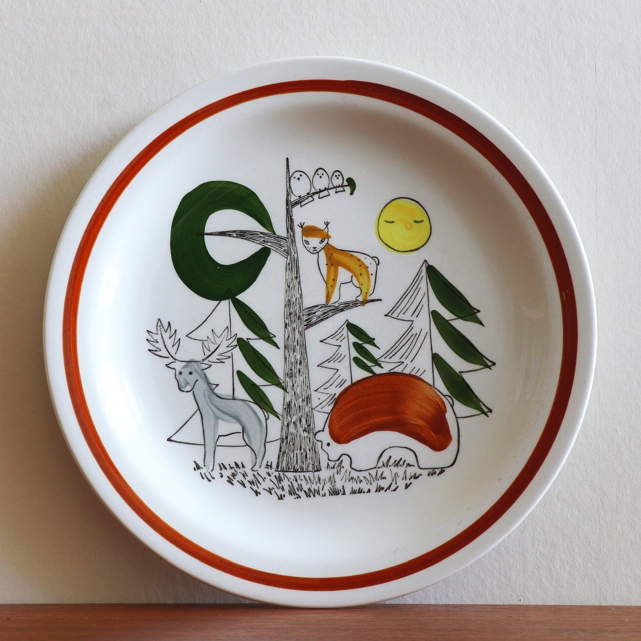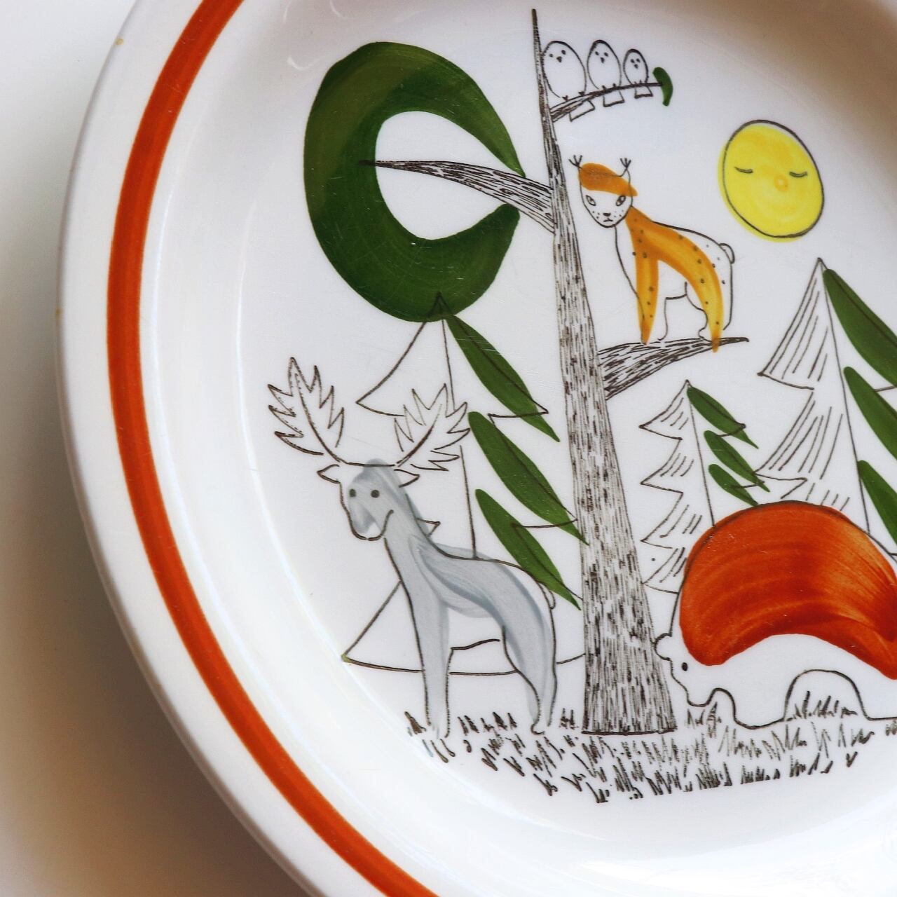 スウェーデンのロールストランドで製作されたSkansen。ダブルハンドルのマグ、プレート、ボウルの3点で子供用食器セットとして販売されたうちの1点です。