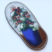 Omenankukat=リンゴの花を描いた作品で、約40㎝サイズと同氏の作品の中でも大きなサイズとなります。角度によって釉薬がオパールの遊色的に乱反射し、華やかさも感じるアイテムです。