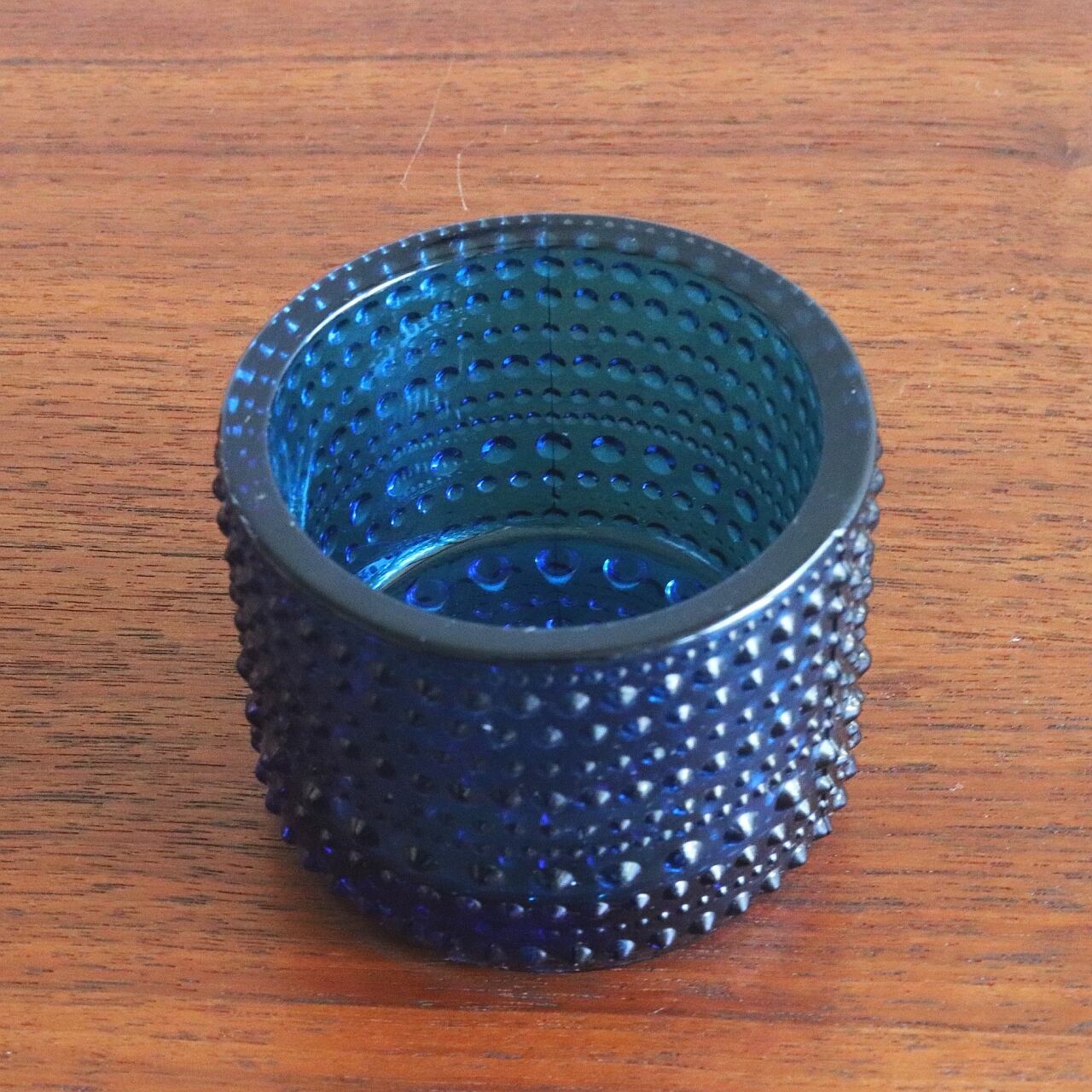 プレスガラスで製作されたシリーズで、大きさの異なる粒が規則的に並ぶアイコニックなデザインです。