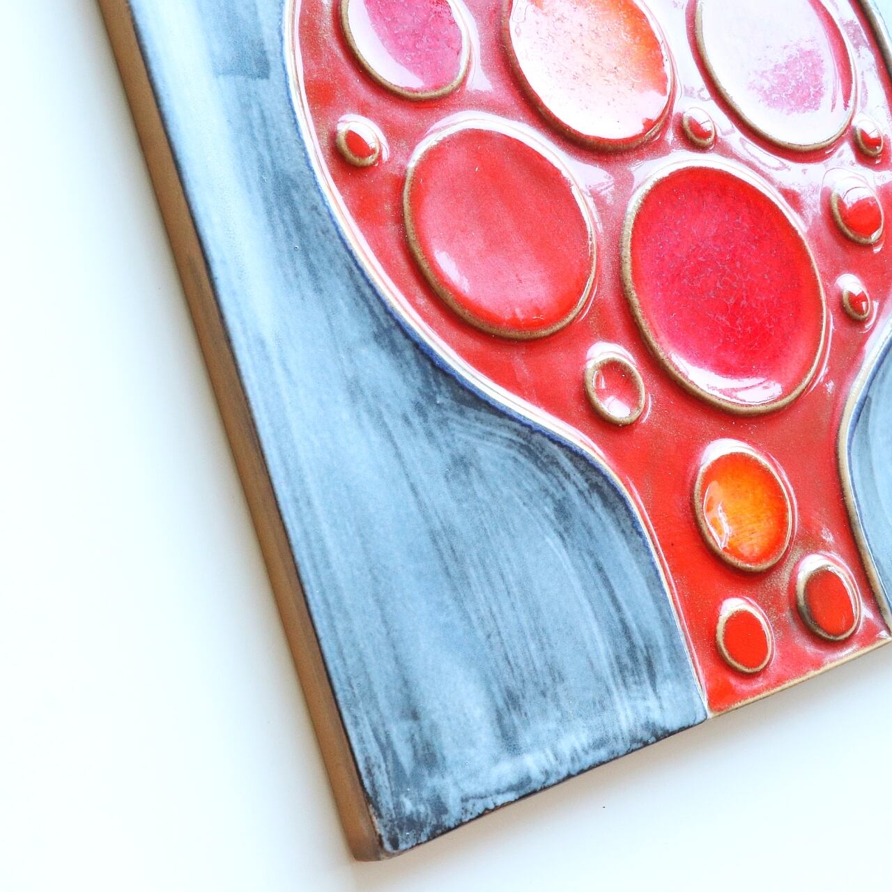 大型の陶板に幾何模様が描かれたKavalkadシリーズは13種類のデザインが製作されました。サイズは31㎝角を中心に20cm角まで3つのパターンが製作され、それぞれハンドメイドで製作されています。