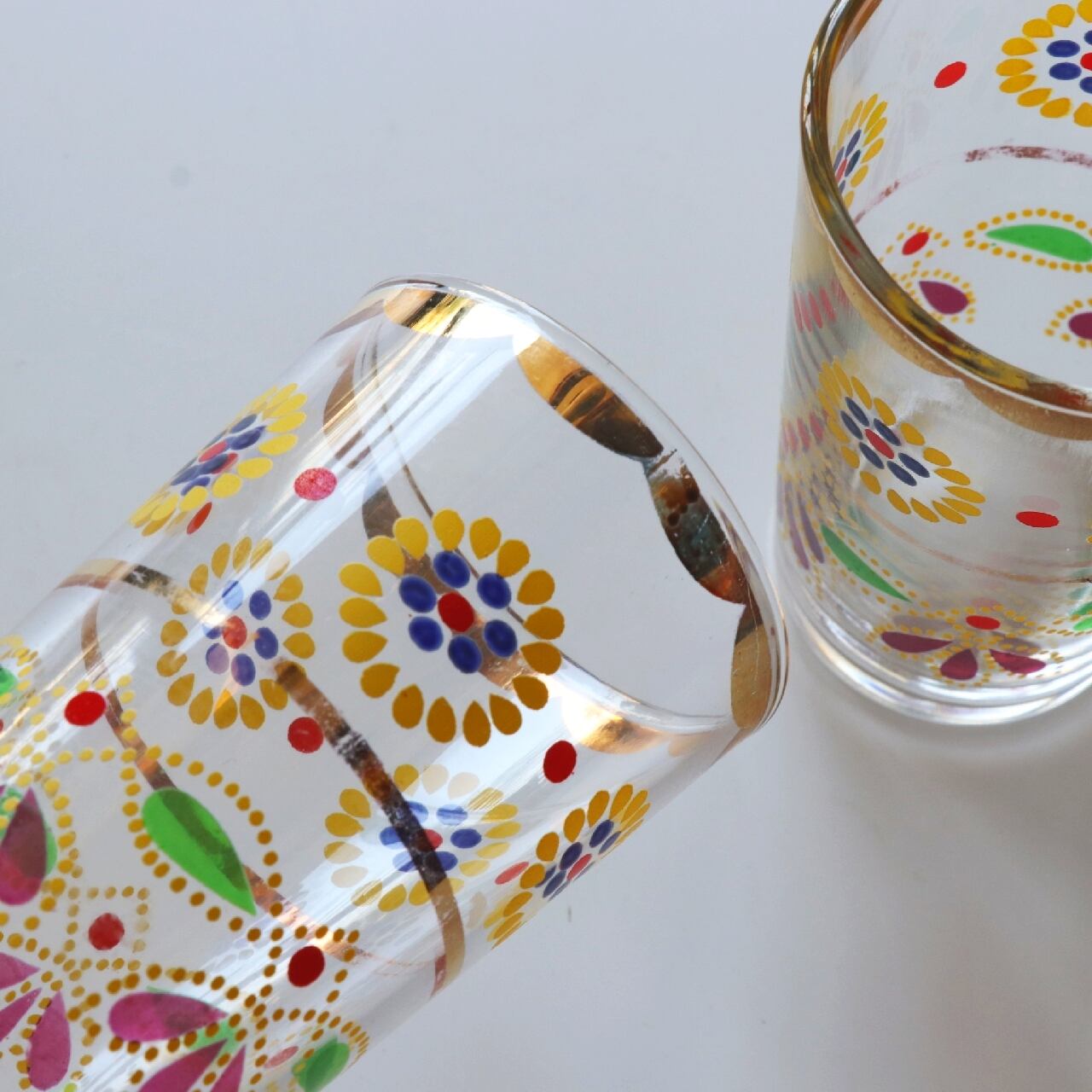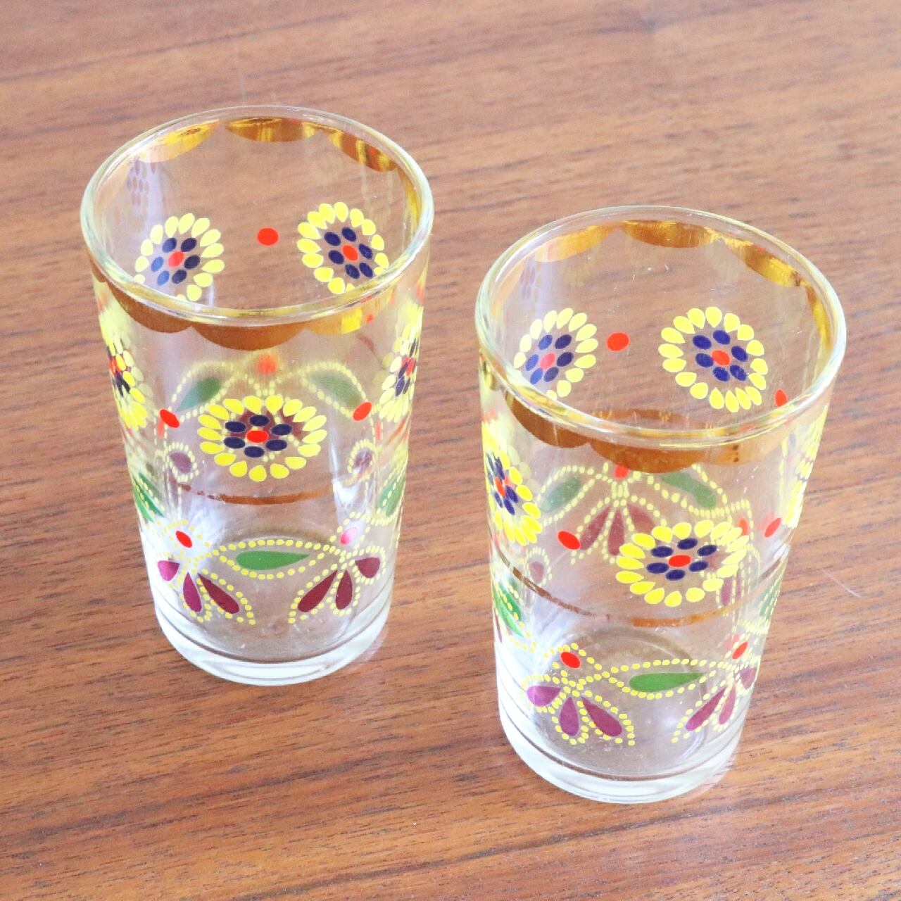 華やかでノスタルジックな花柄は昭和レトロのようでもあり、懐かしさと愛らしさが入り混じったようなデザインです。どちらも小さくペイントロスはありますが全体的に良好なコンディションです。歯ブラシのスタンドとして、またフラワーベースとしてのご利用も良さそうです。
