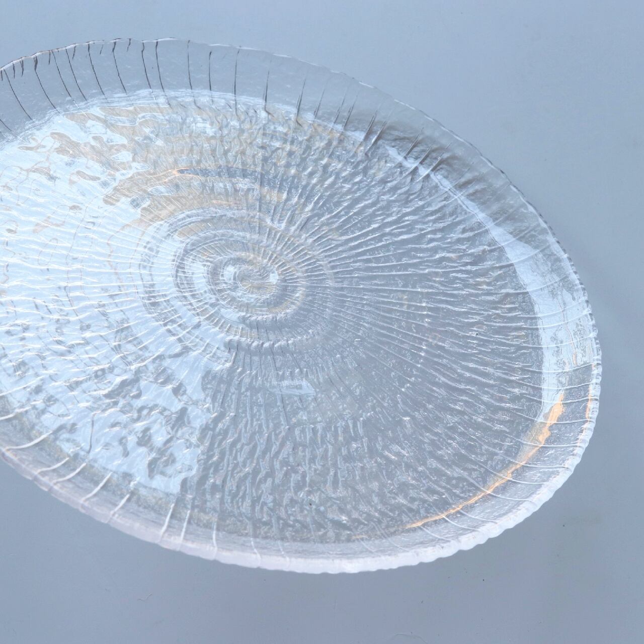 スウェーデンで買い付けたガラスのプレート。さざ波のような模様が描かれています。