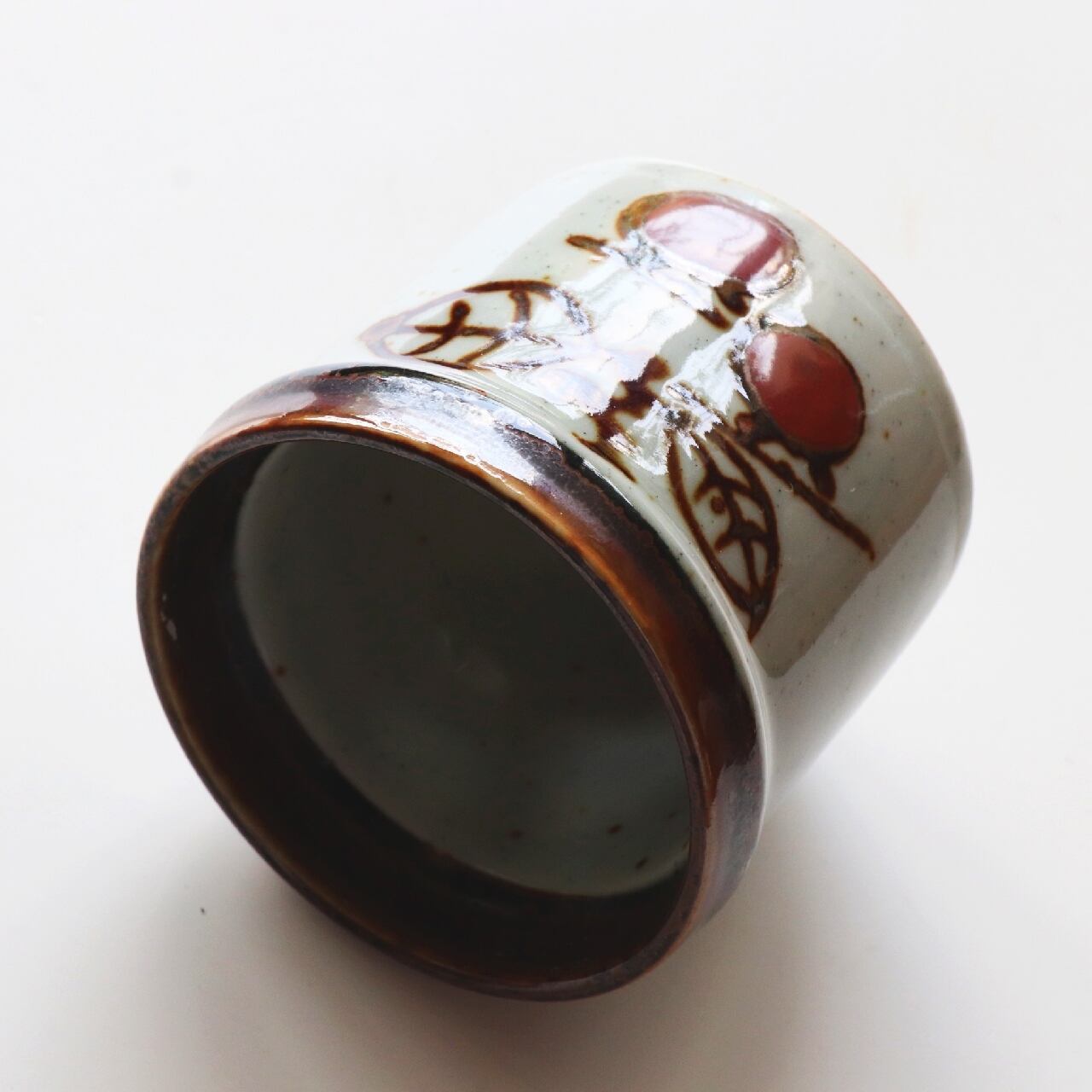 クリーム色のベースに茶色の筆絵で植物の絵が描かれています。どこか和風でもあり、素朴な味あいのあるアイテムです。