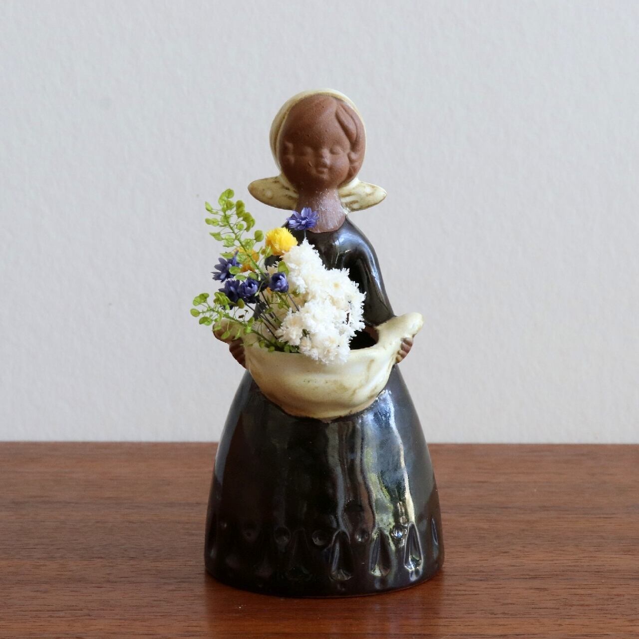 小さなドライフラワーを飾るように製作されたシリーズのうちの一つで、女性が籠に花を摘んだようなデザインとなる陶器です。花は付属しません。
