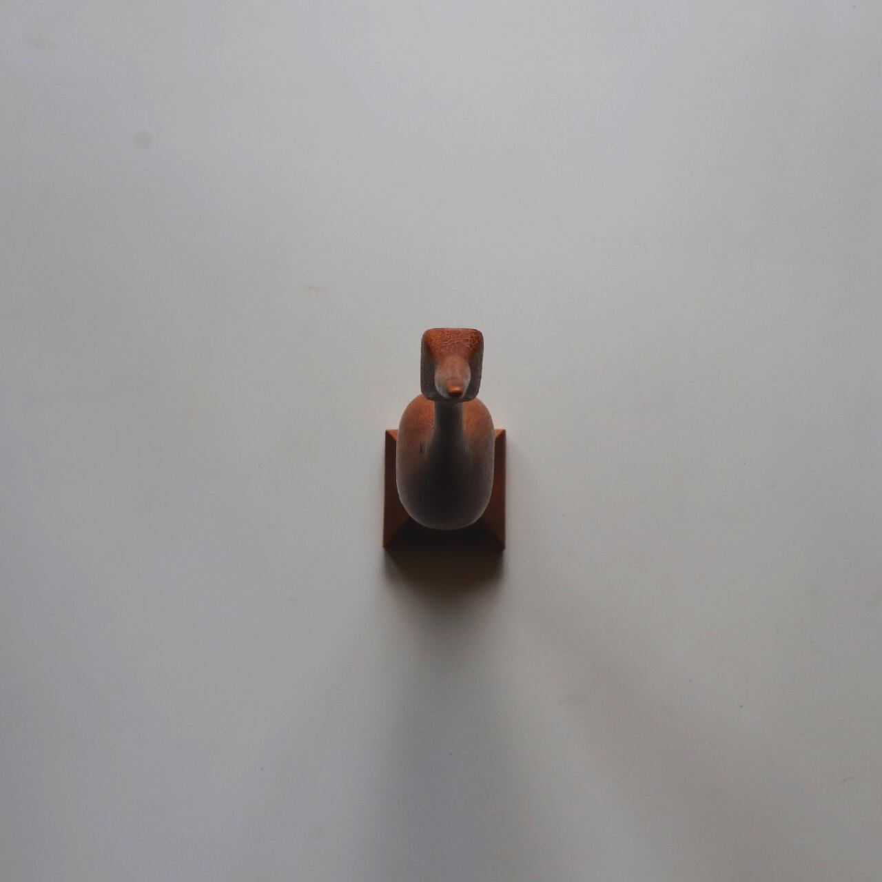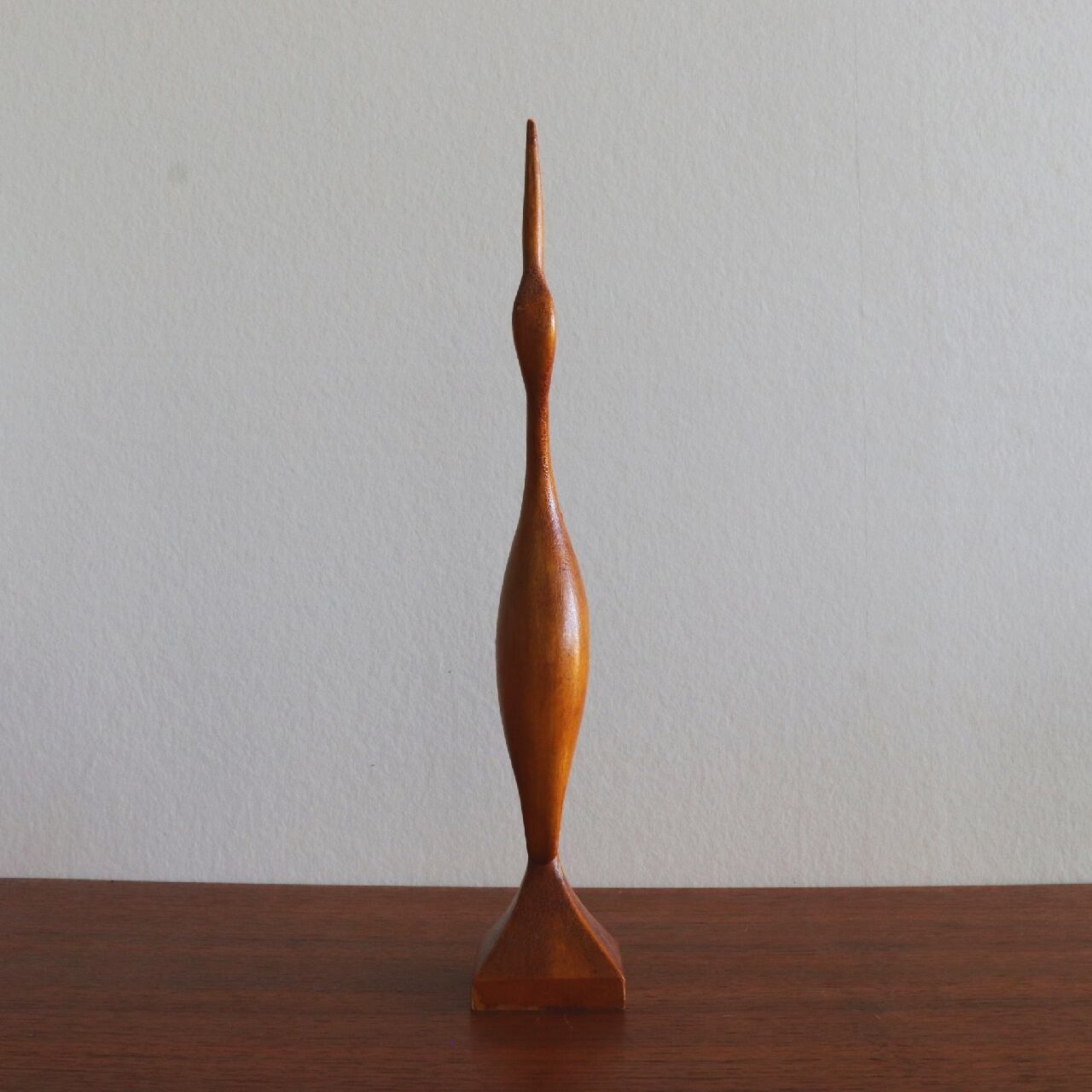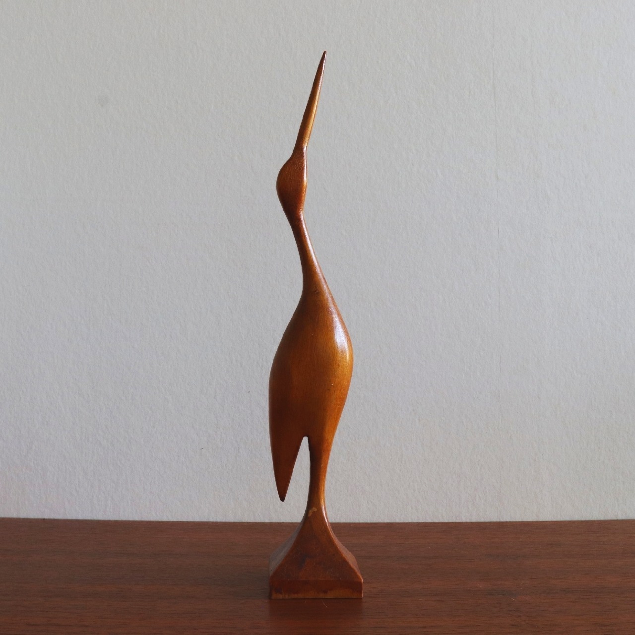 1950-60年代に製作されたチークの鳥のオブジェ。 ミッドセンチュリーではこうした動物のオブジェが非常に人気で、雑誌やテレビ、映画など様々なシーンでインテリアとして空間を彩っていました。 凛とした表情が美しく、飾るだけでお部屋の空気を少し印象深くしてくれそうです。