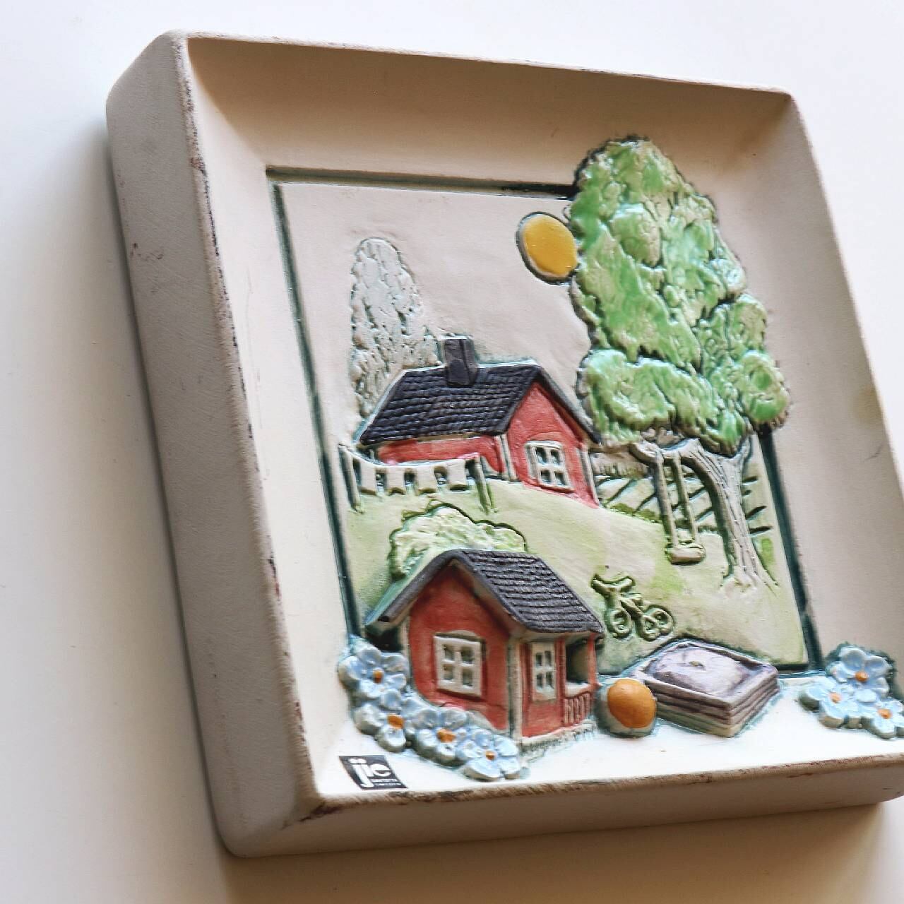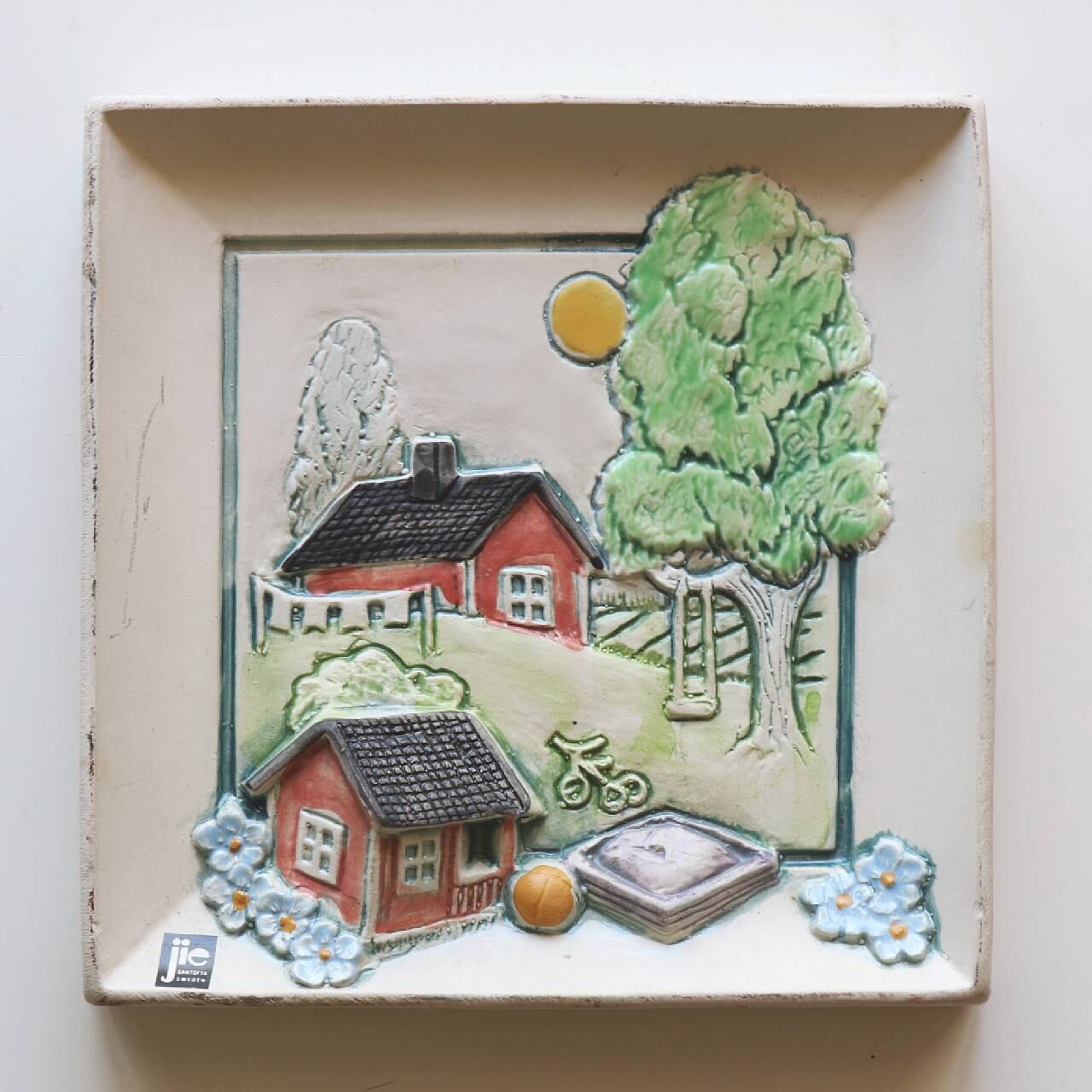 スウェーデンのJie Gantoftaで製作された陶板。1960年代からスウェーデンの家庭で人気となった陶板のひとつです。背面は壁掛けが出来るように針金が付いています。