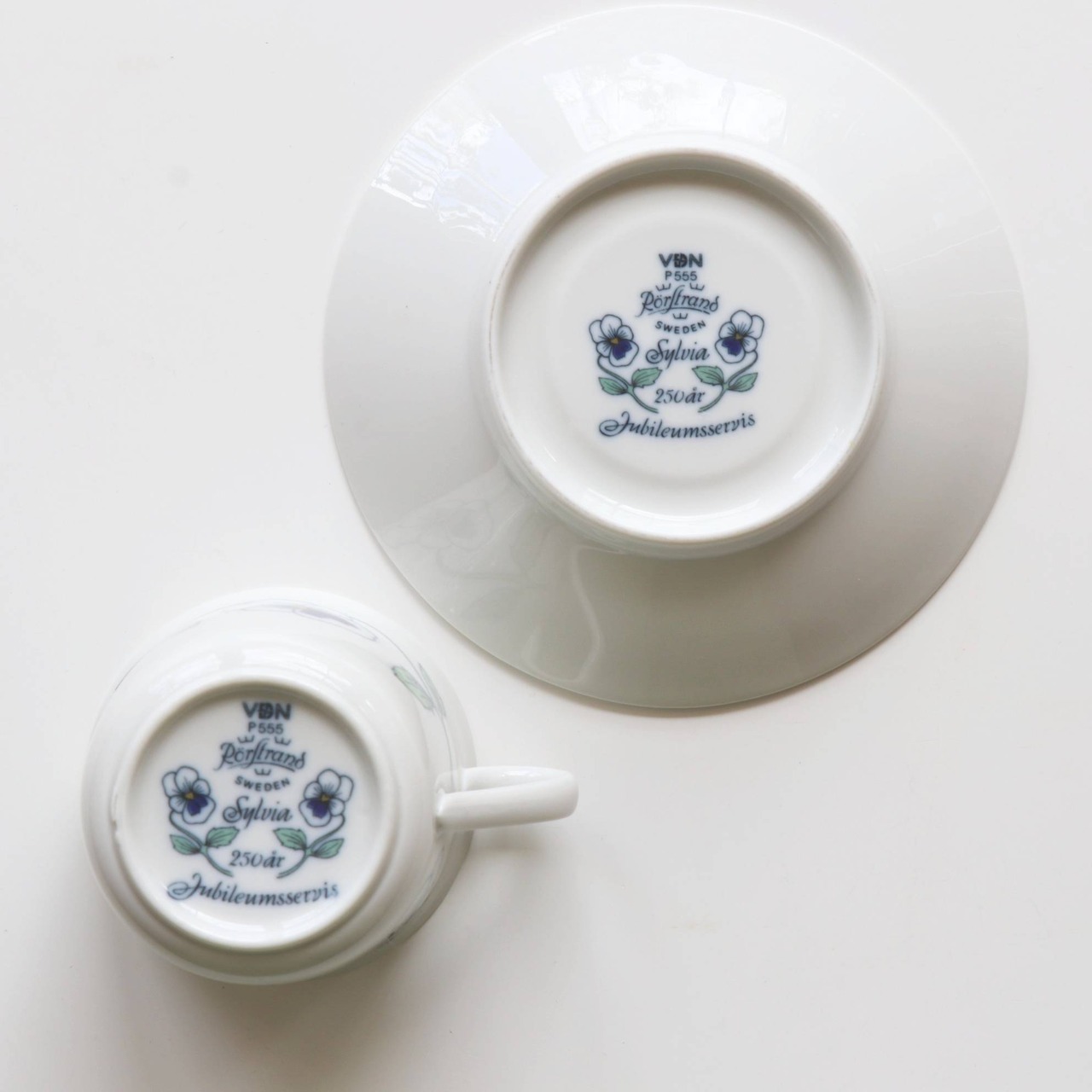 華やかで品の良い柄に加え、バックスタンプにも同じ花と250år(=250周年)、Jubileumsservis(=アニバーサリーサービス)と描かれた特別なモデルです。