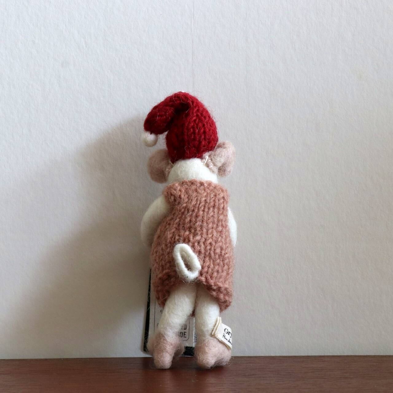 【c6784】プレゼントを持ったダスティレッドドレスのホワイトマウス [ En Gly & Sif/ Denmark]