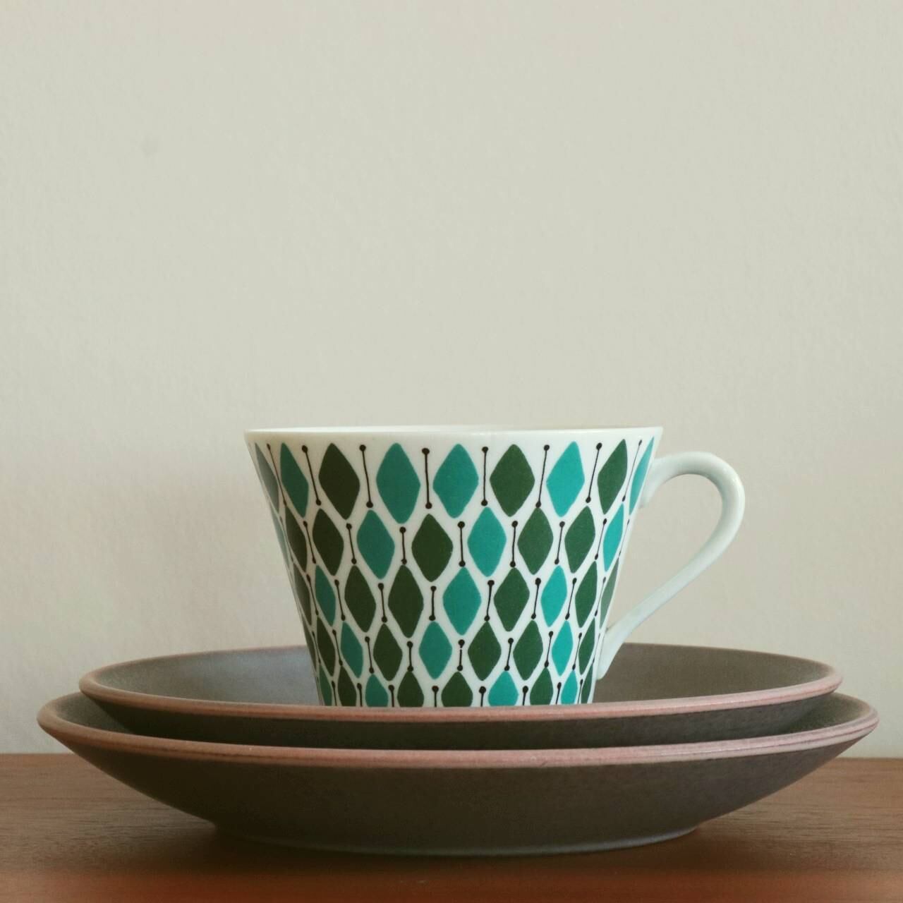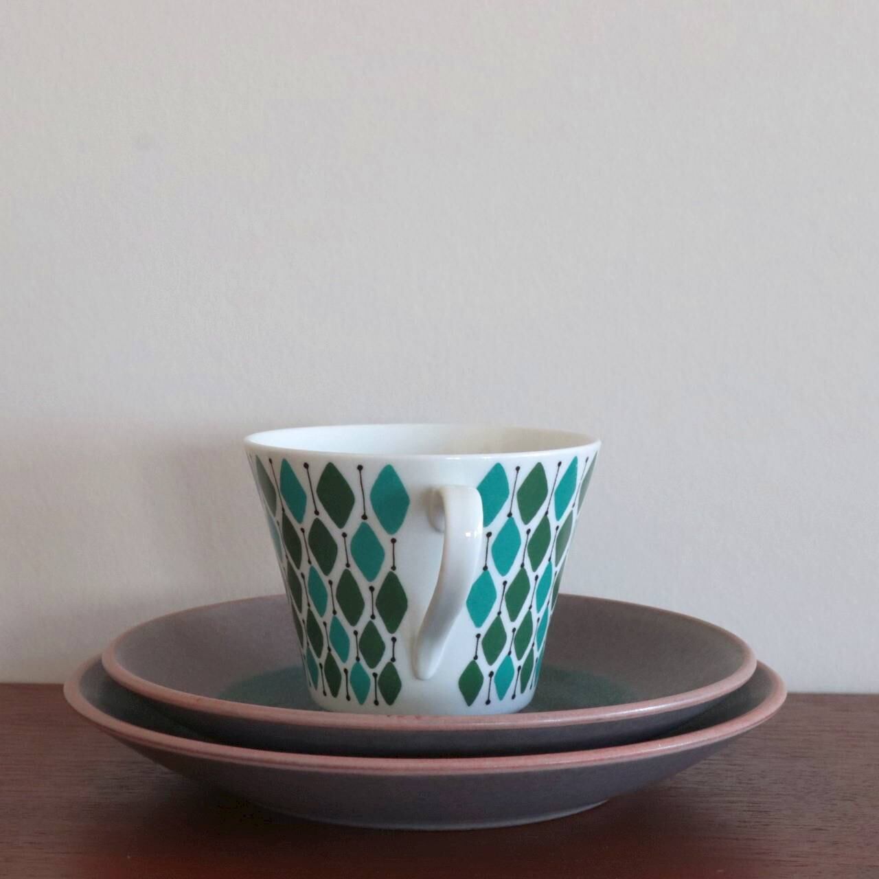 1960-70年代、スウェーデンのRorstrandで製作された”Afrika”シリーズ。カップは真っ白の素地で、それ以外のソーサーやプレート、ボウルなどをグレーの素地で仕上げた珍しいシリーズです。