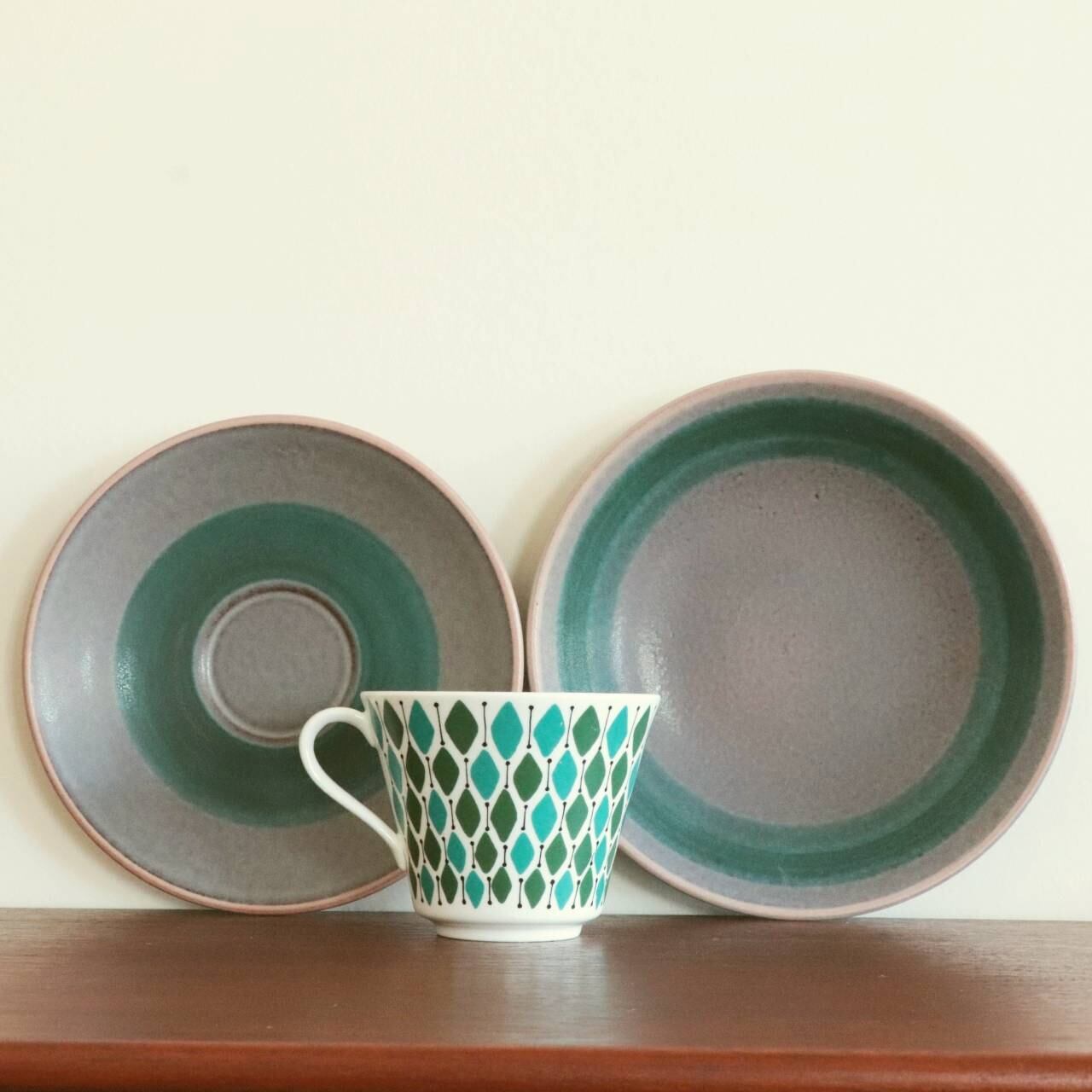 1960-70年代、スウェーデンのRorstrandで製作された”Afrika”シリーズ。カップは真っ白の素地で、それ以外のソーサーやプレート、ボウルなどをグレーの素地で仕上げた珍しいシリーズです。