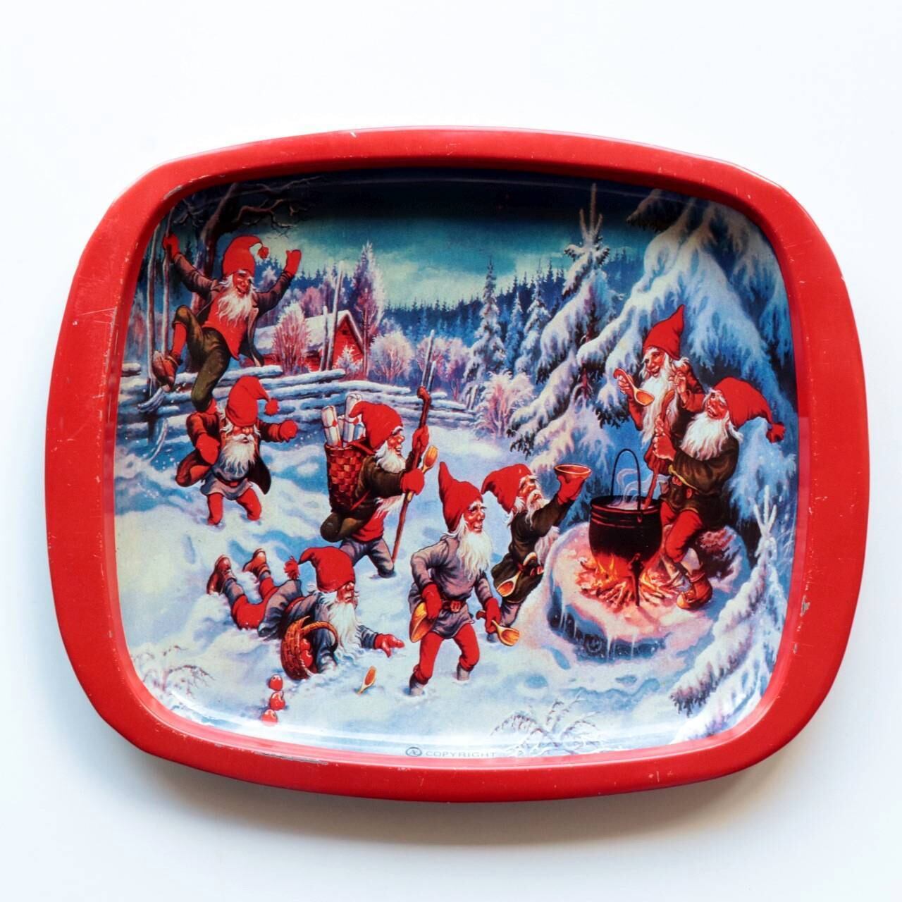 1960年代頃、スウェーデンで製作されたクリスマス(ユール)柄のトレイ。