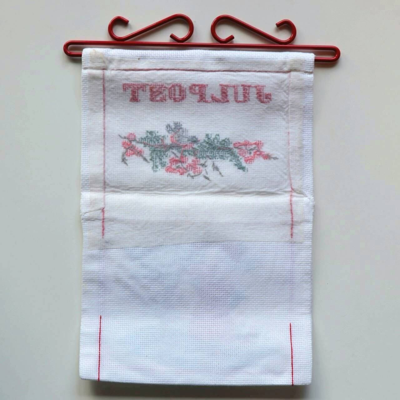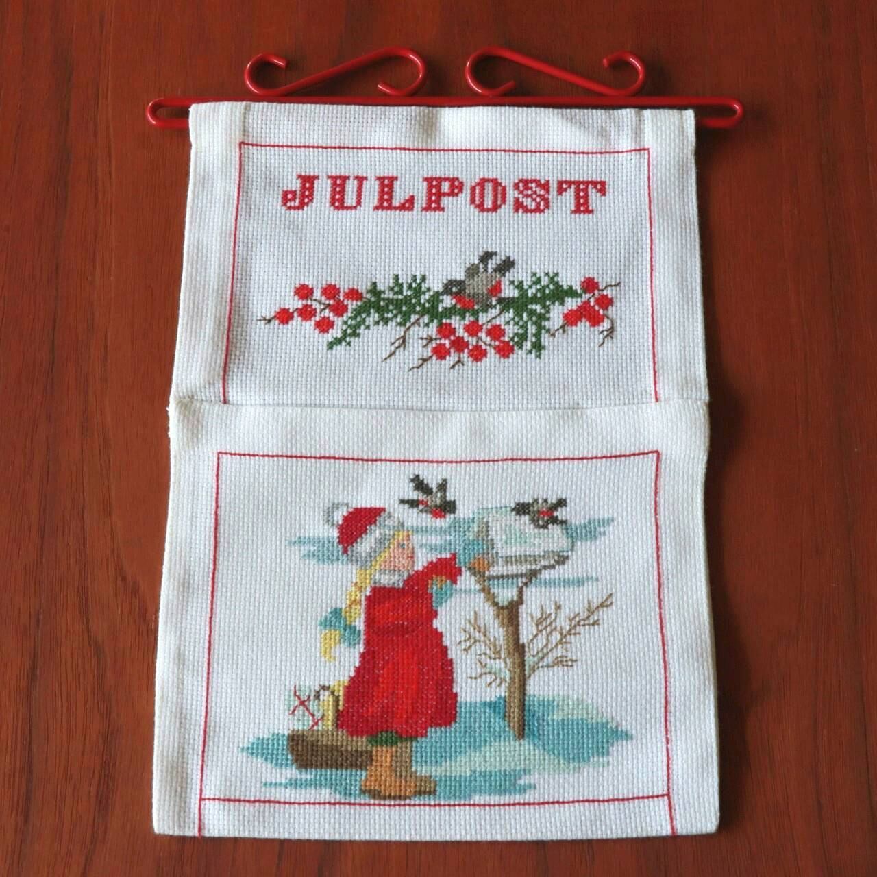 1960年代頃、スウェーデンで製作されたクリスマス(ユール)柄の壁掛け。刺繍で製作されたレトロで独特の存在感もある作品です。