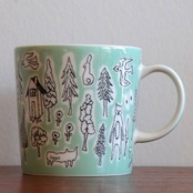 もとになっているのは1952年にカイ・フランクがデザインを手がけたティーマ です。シンプルなフォルムの白地のティーマに皆川 明氏が手がけたデザインが美しく映えます。空想の物語が描かれたイラストは、フィンランドの湖を思わせる深いブルーをベースにしており、自然の木々や花や動物がすべて等しく同じ生命として表現されています。