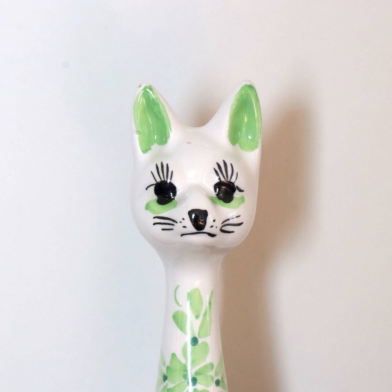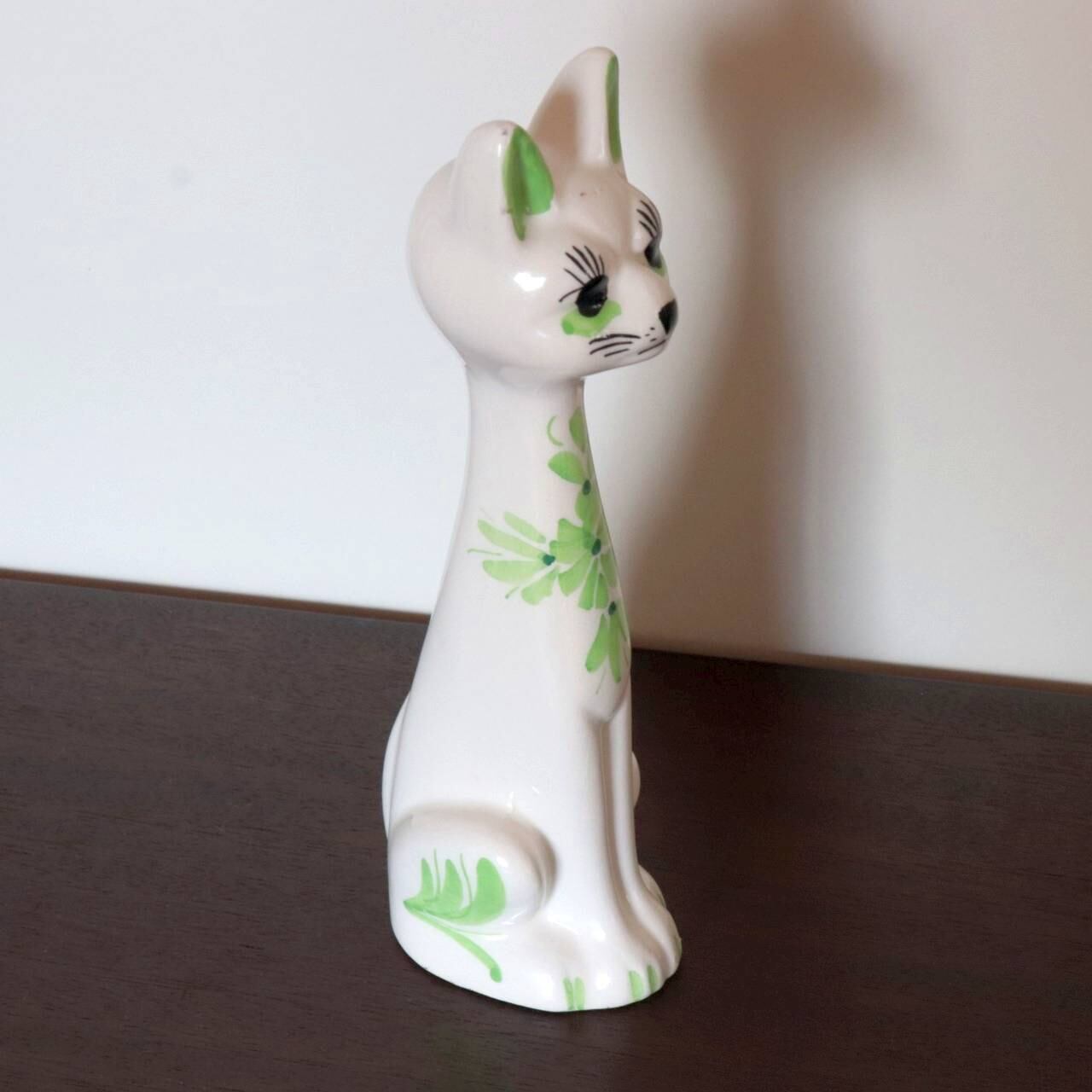 上品にすまし顔をした陶器の猫。細部まで繊細に製造されており、ハンドペイントの表情もあってとても良い存在感をみせる作品です。