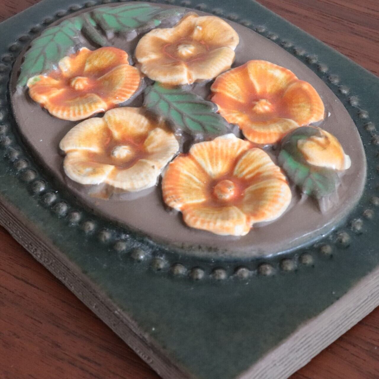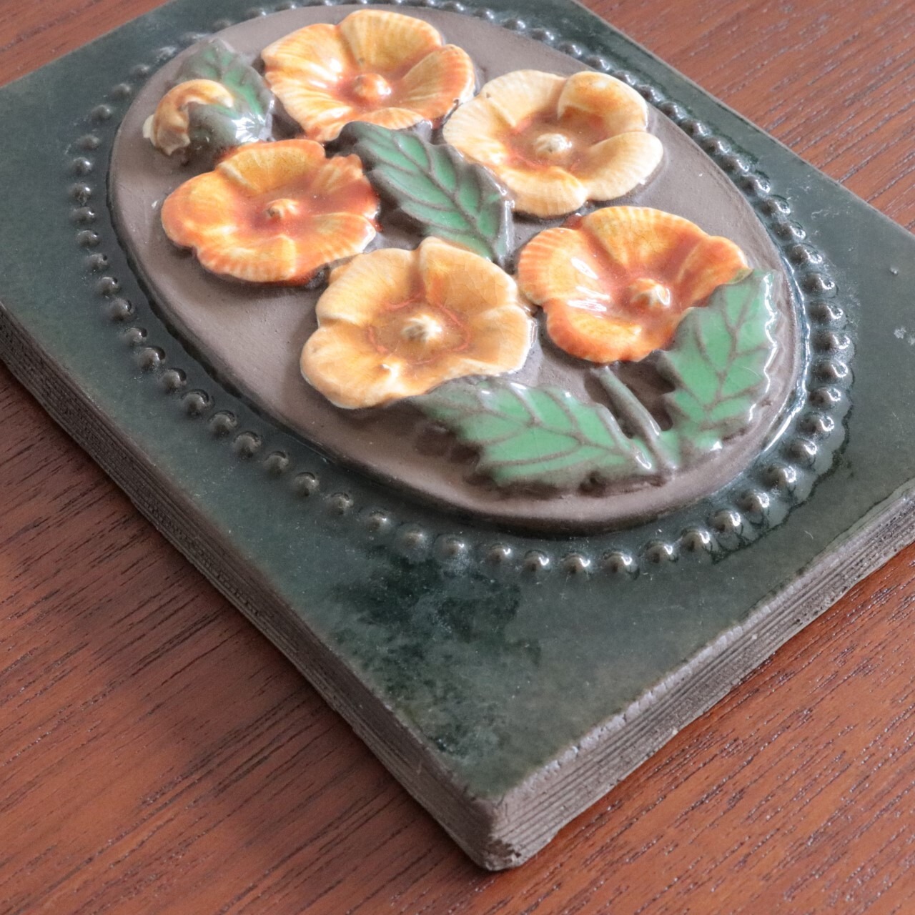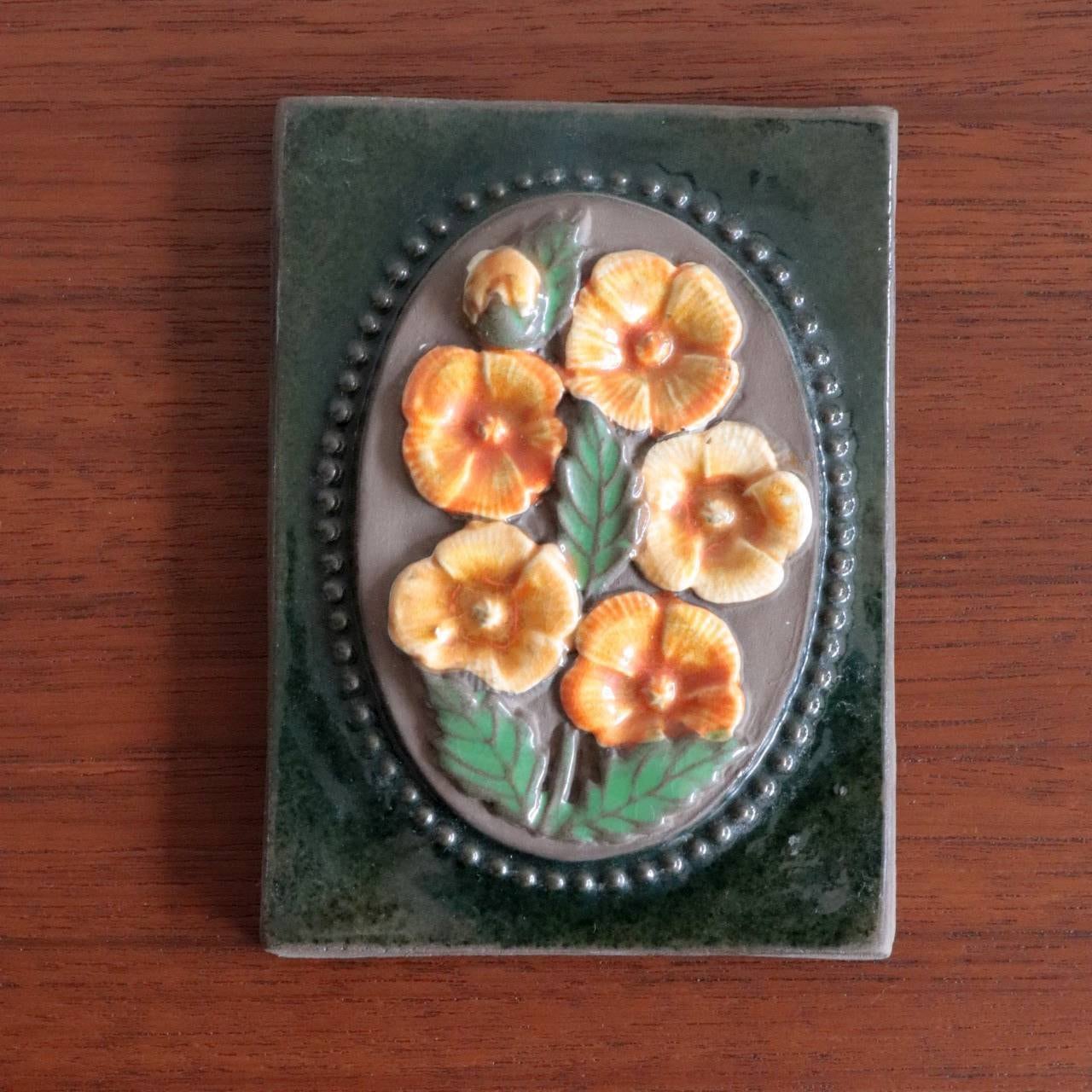【c6952】オレンジ色の花の陶板(15.4㎝) [Jie gantofta / Sweden]