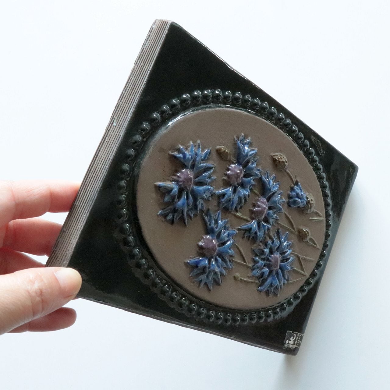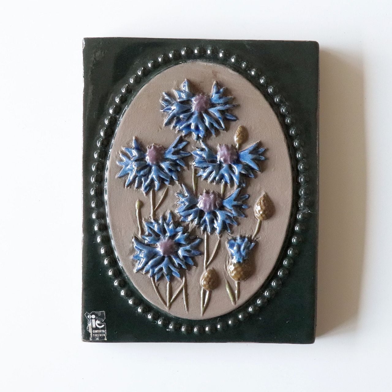 【c8027】矢車菊の陶板(16.5㎝) [Jie gantofta / Sweden]
